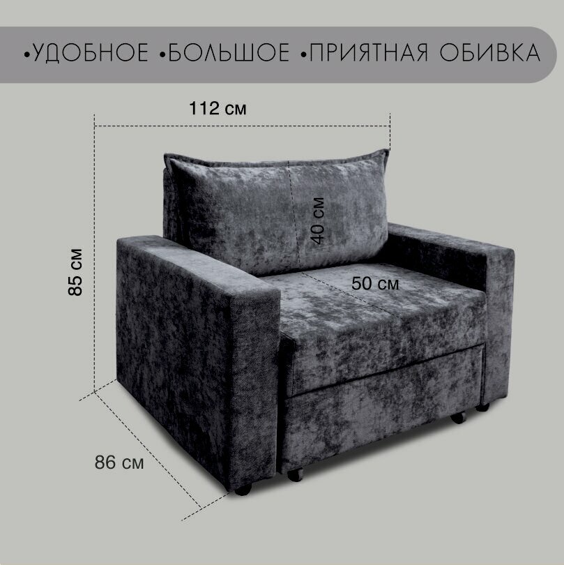 Кресло-кровать "Милли" с подлокотниками, шенилл, темно-серый интересное:
