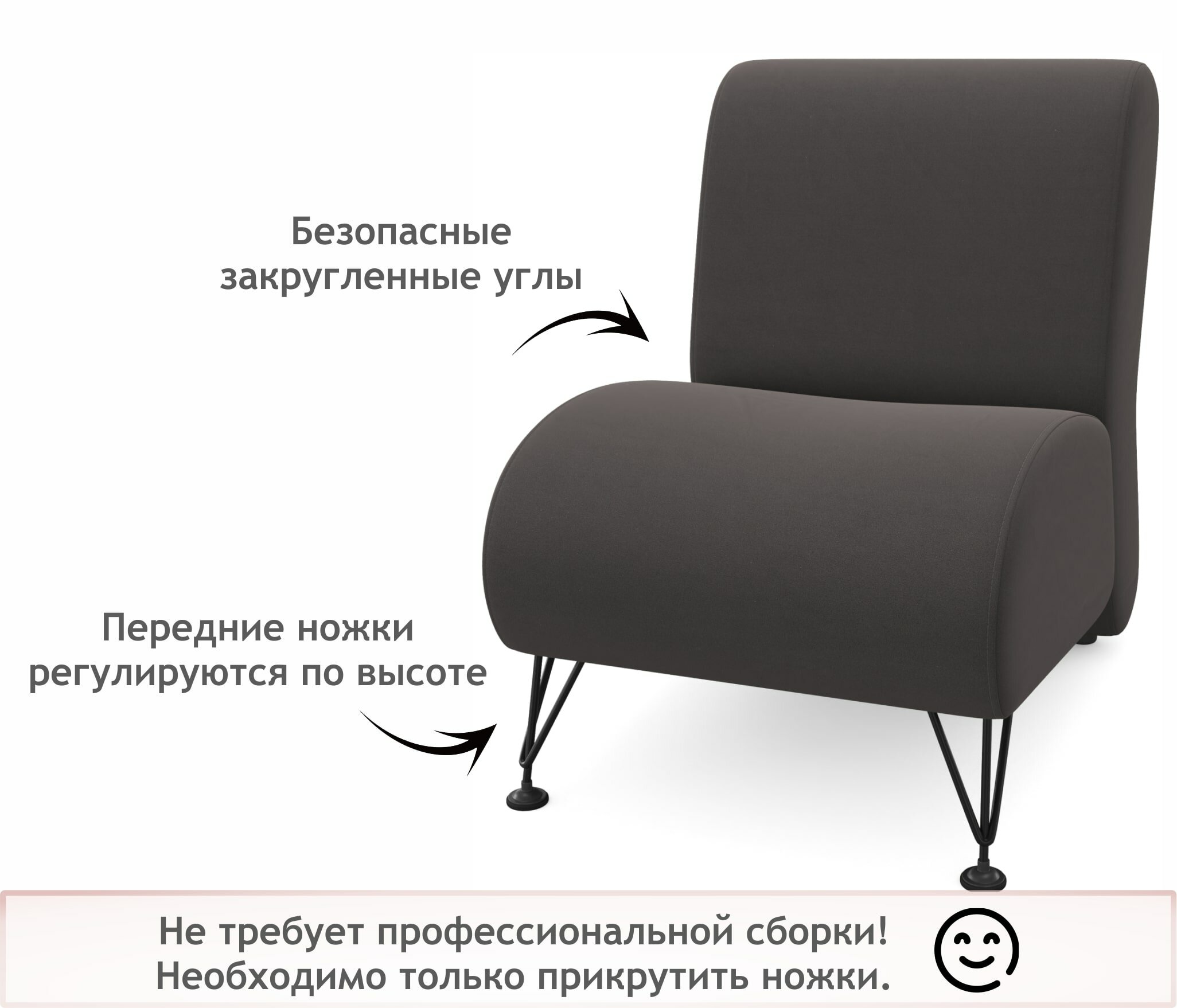 Кресло мягкое дизайнерское Pati темный Zeppelin, из велюра на ножках