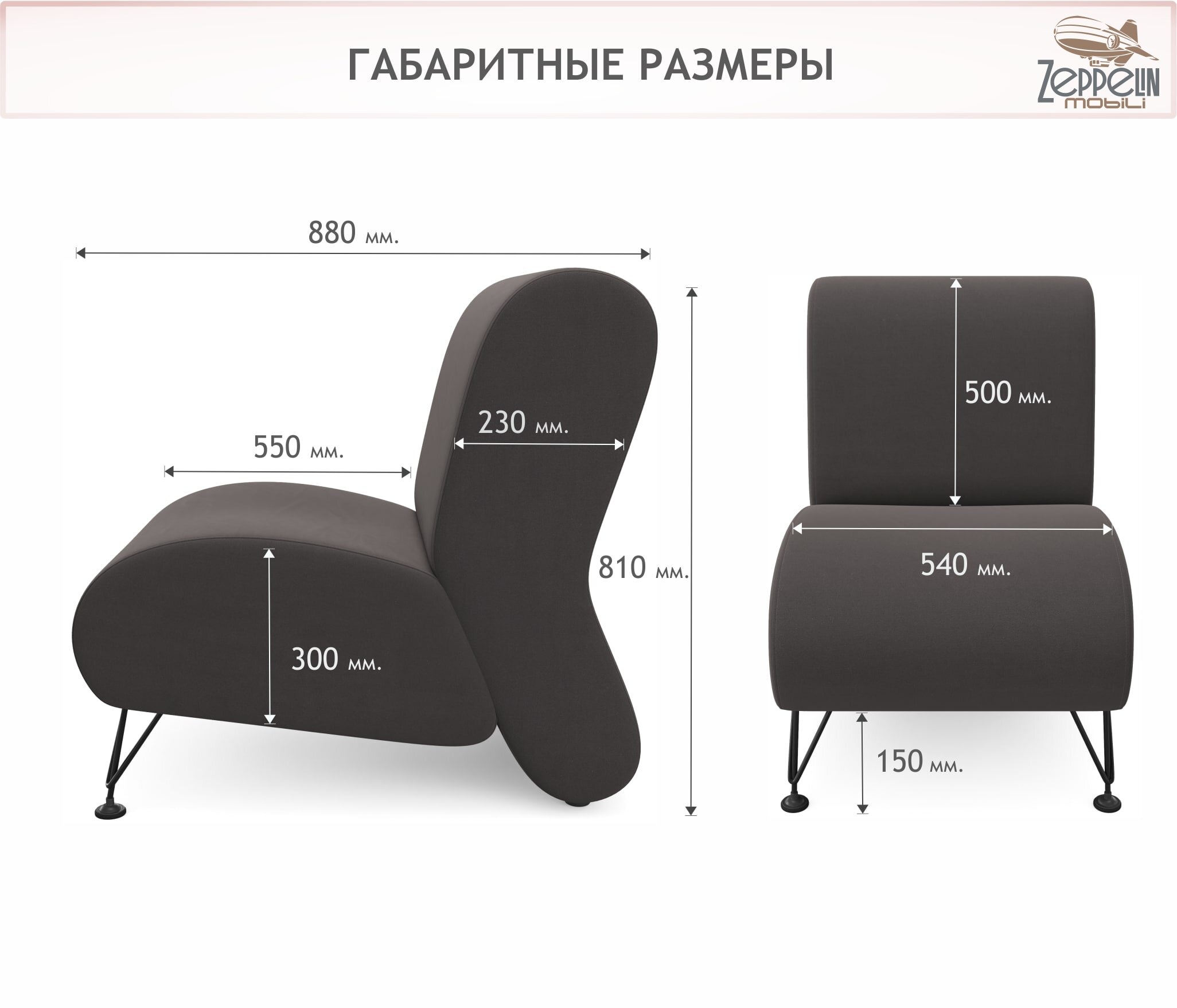 СохранитьКресло мягкое дизайнерское Pati шоколад Zeppelin, из велюра на ножках интересное: