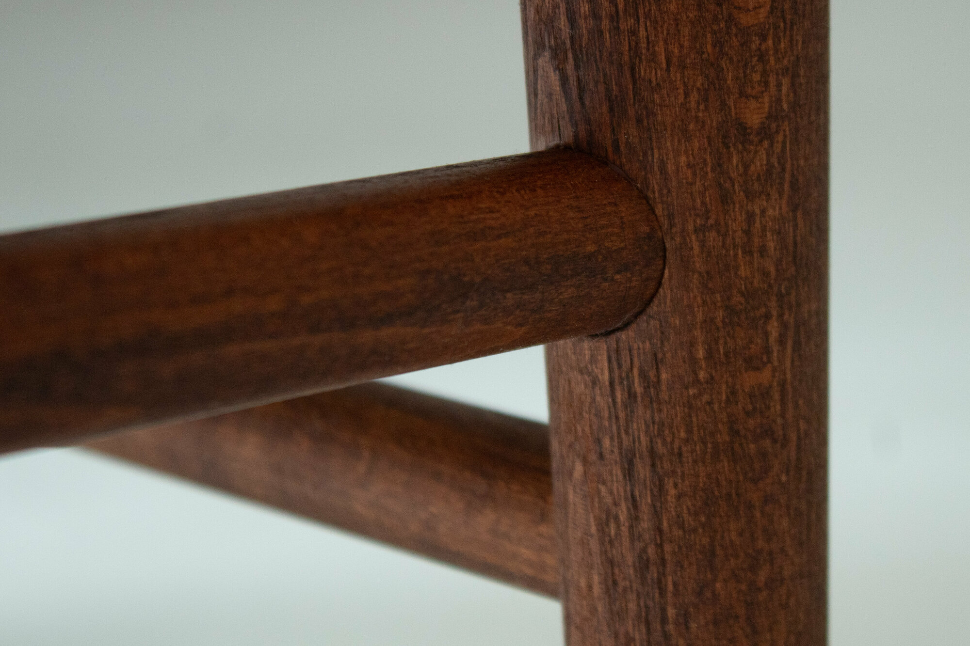Кресло Хэйро лёгкое, точёный массив кавказского бука покрыт морилкой и масло-воском, ткань: тёмно-серый шенилл