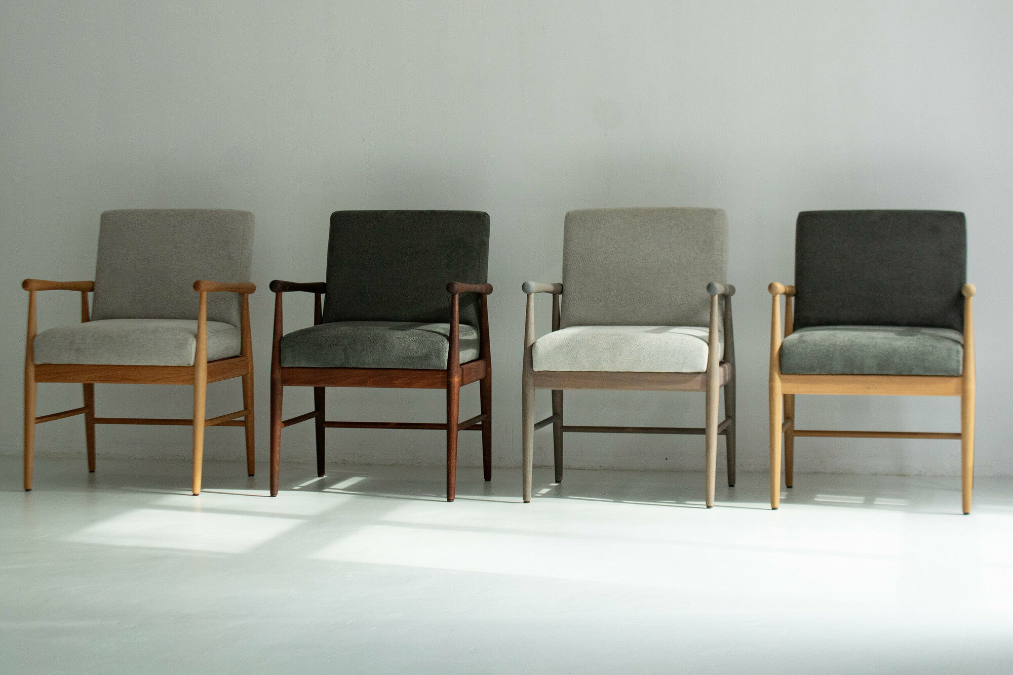 Кресло Хэйро лёгкое, точёный массив кавказского бука покрыт морилкой и масло-воском, ткань: тёмно-серый шенилл