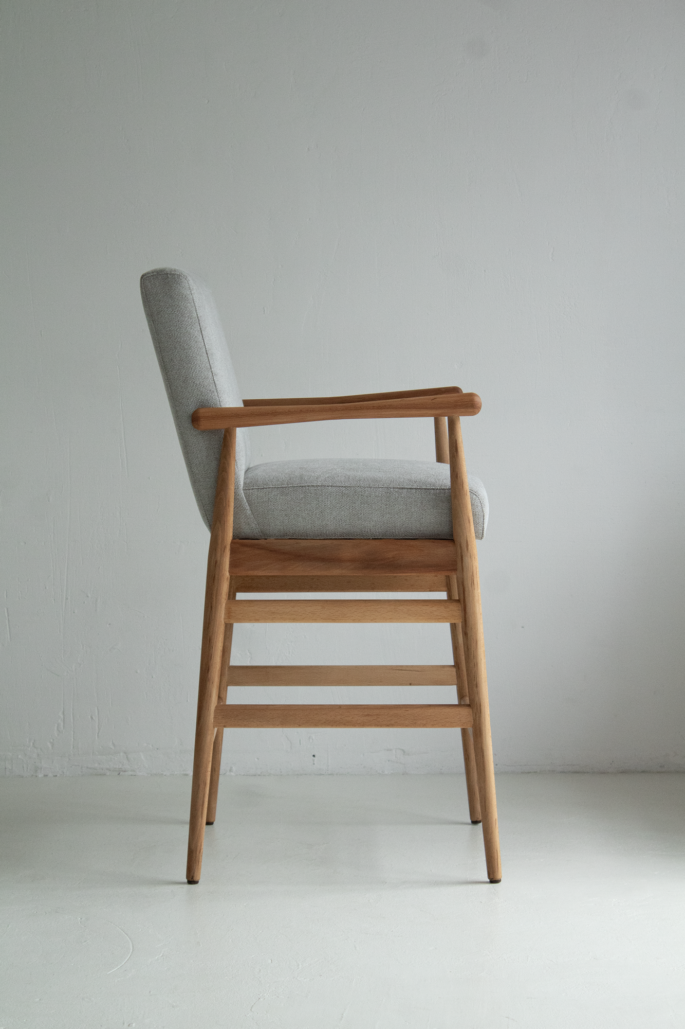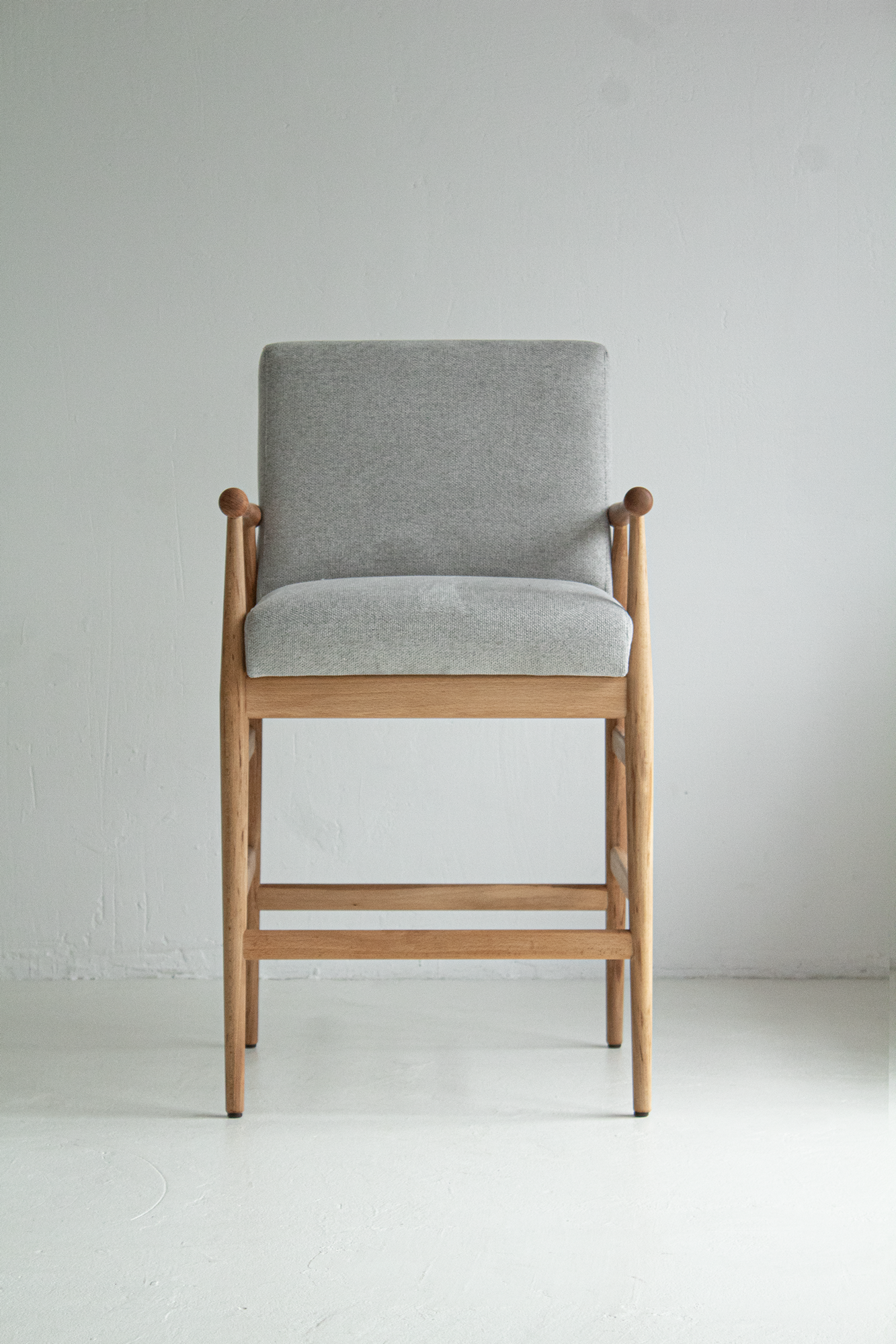 Кресло Хэйро Барное, точёный массив кавказского бука покрыт масло-воском, ткань: светло-серый шенилл