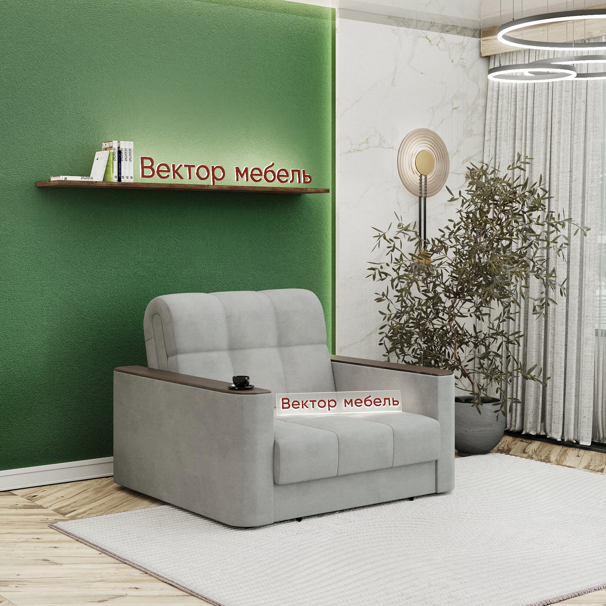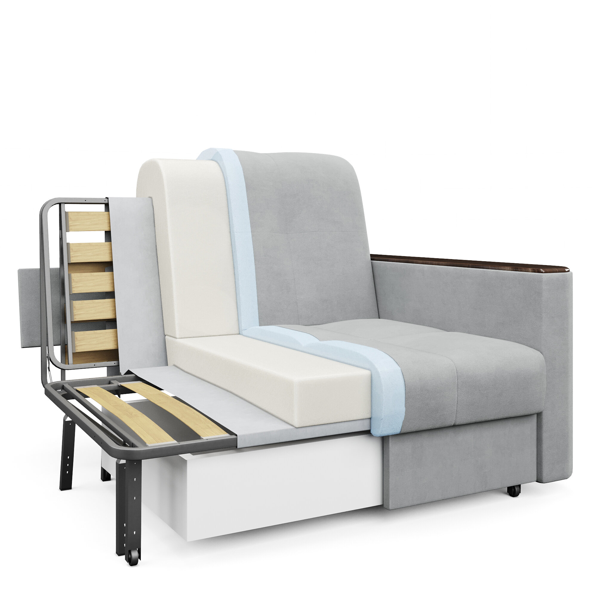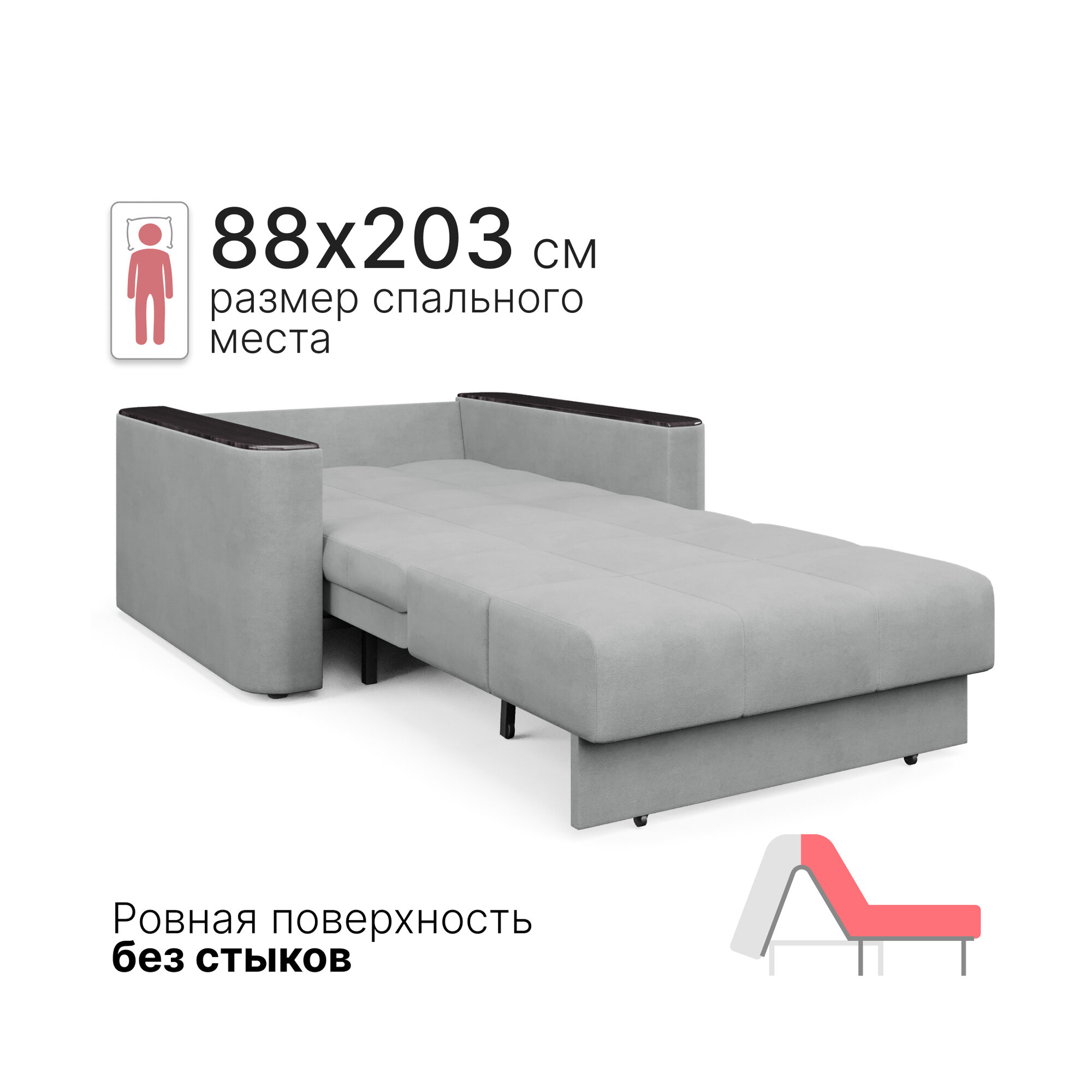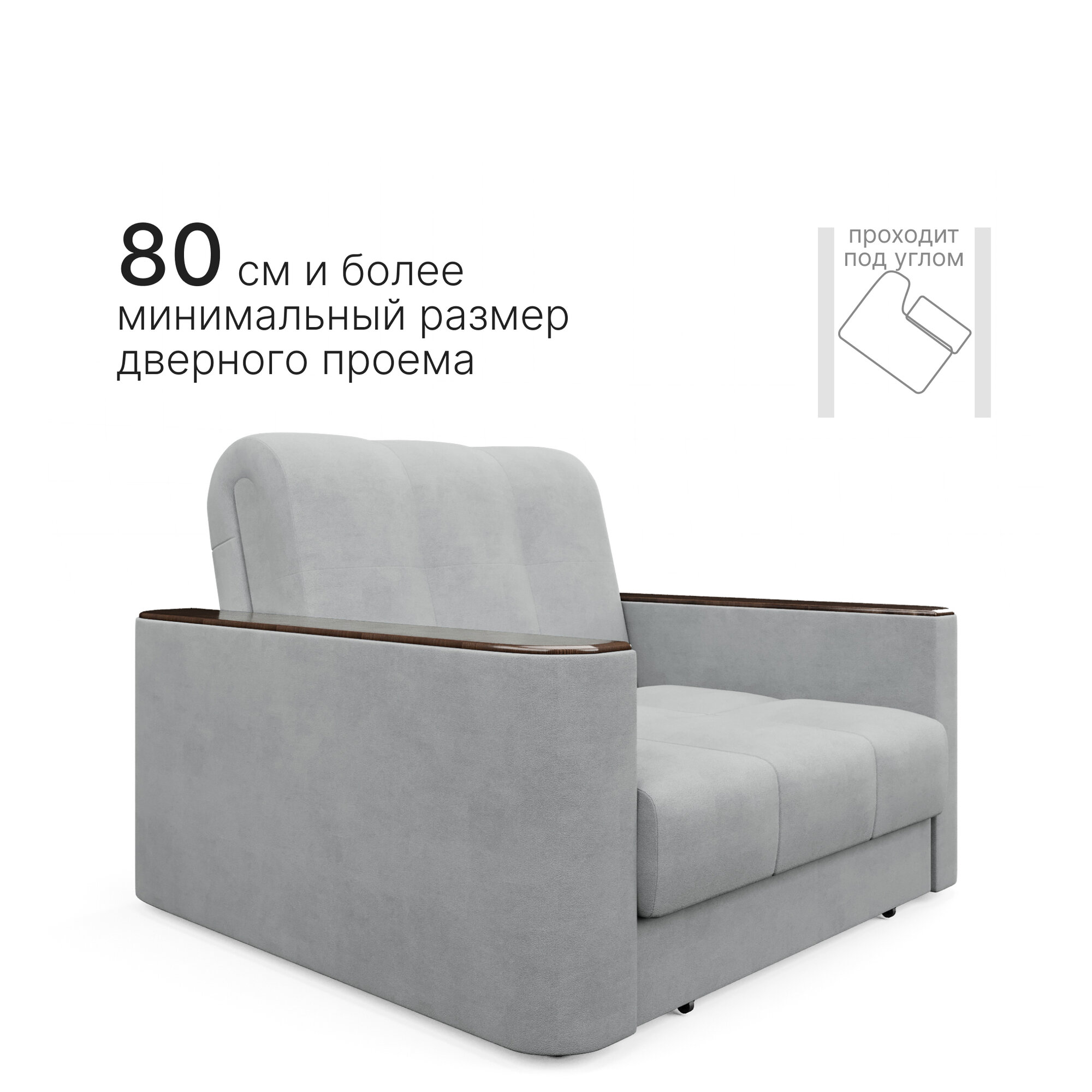 Кресло-кровать раскладное Аккордеон, Беспружинное, 88х203 спальное место, Валенсия, велюр серый интересное: