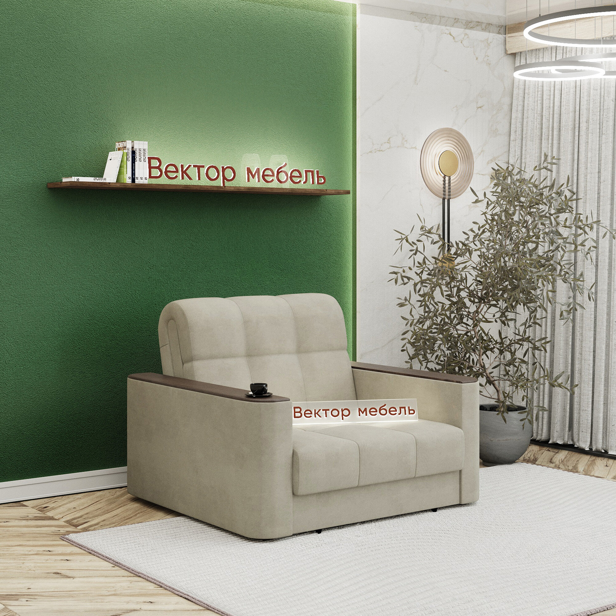 Кресло-кровать раскладное Аккордеон, Беспружинное, 88х203 спальное место, Валенсия, велюр бежевый интересное:
