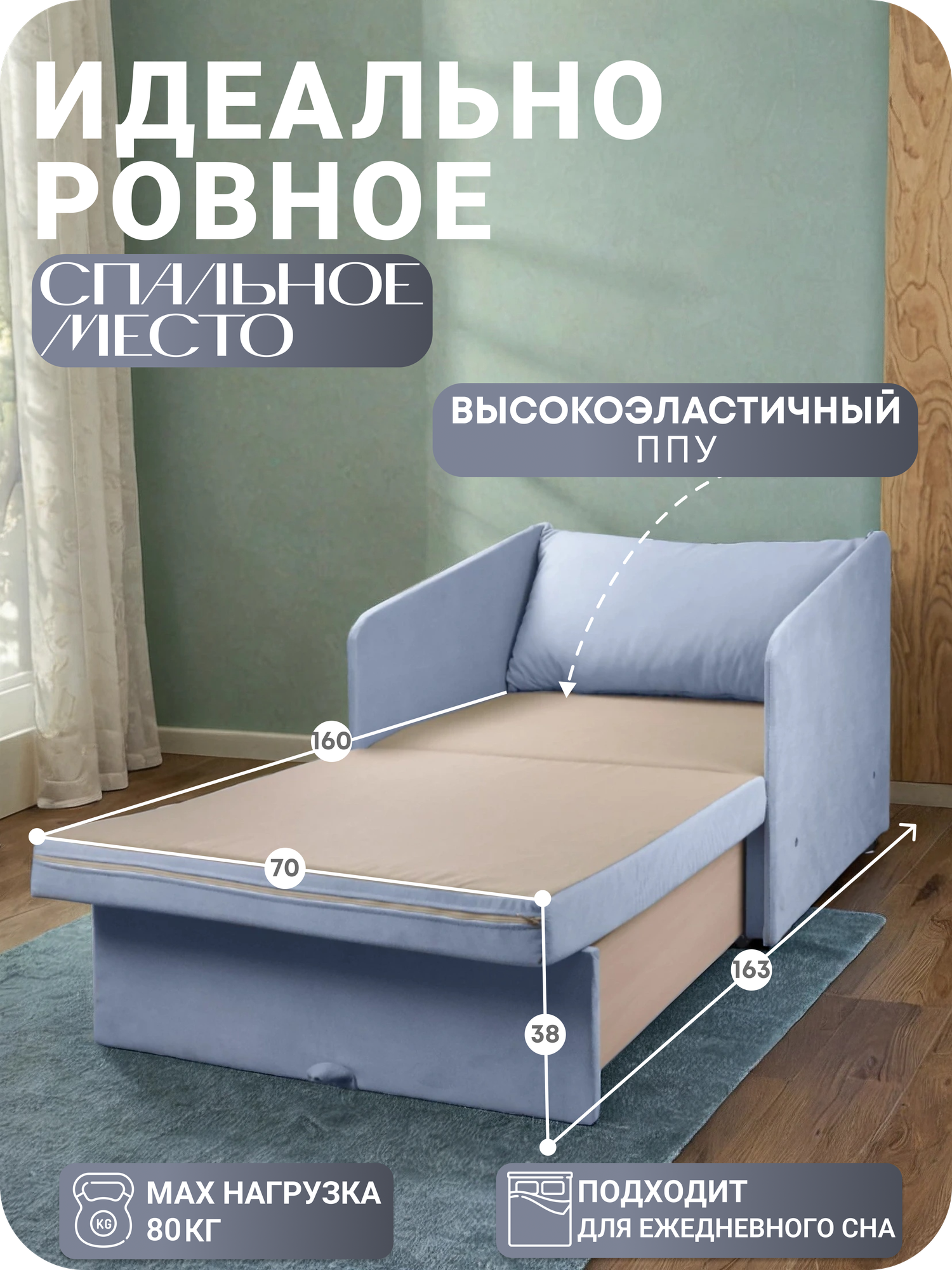 Кресло кровать раскладное с подушкой Сверчок Голубой 191х71 Спальное место
