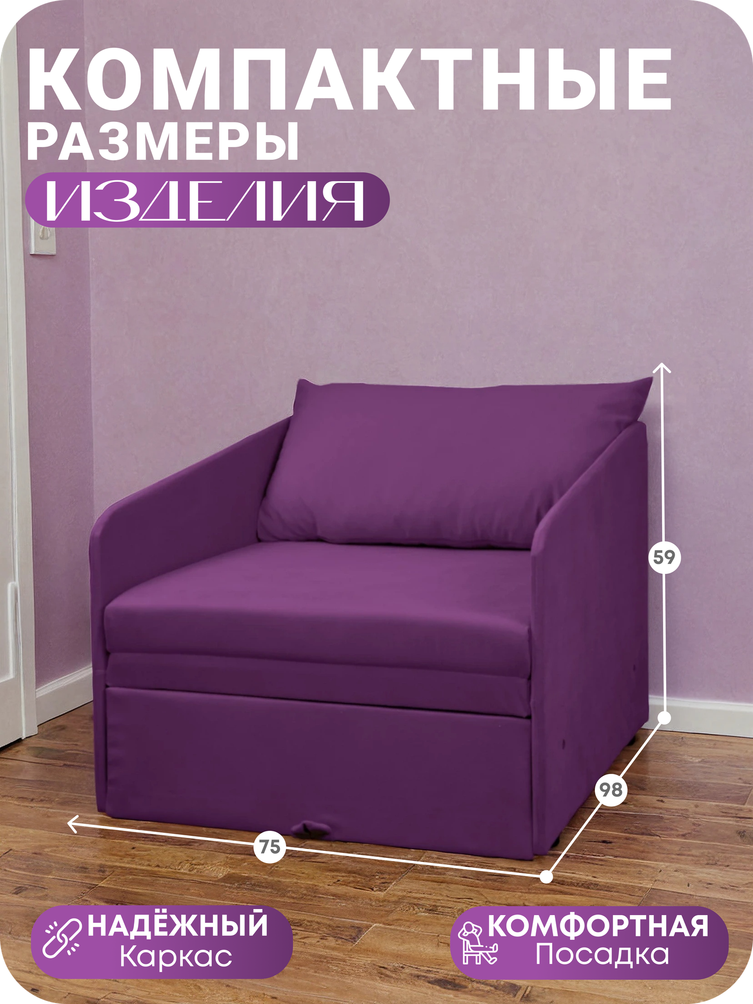 Купить Кресло кровать раскладное Кузнечик Фиолетовый 160х71 Спальное место, Центр Мебель