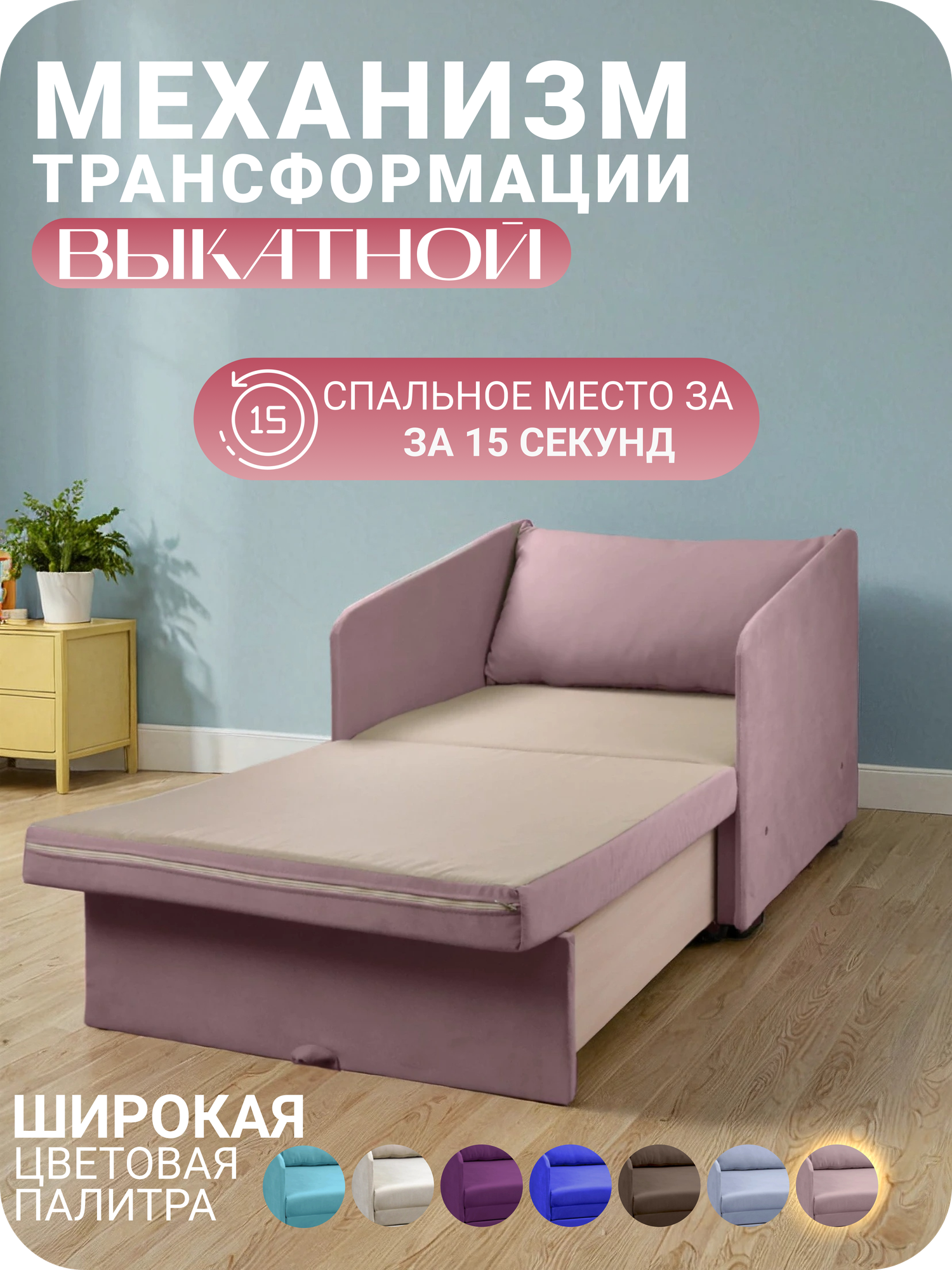 СохранитьКресло-кровать раскладное Кузнечик Пыльная роза 160х71 Спальное место, Центр Мебель интересное: