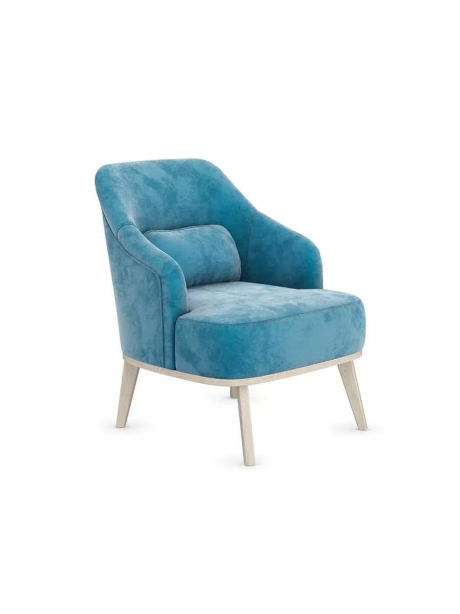 Купить Кресло мягкое Лаурель Миди для отдыха дома с декоративной подушкой, высокие ножки, 67х79х79 см, Лазурь, микровелюр
