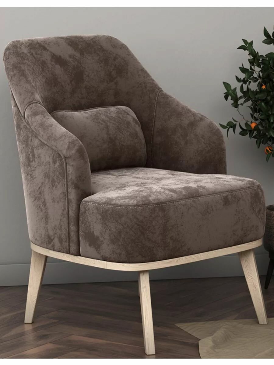 СохранитьКресло мягкое Лаурель Миди для отдыха дома с декоративной подушкой, высокие ножки, 67х79х79 см, Корица, микровелюр интересное: