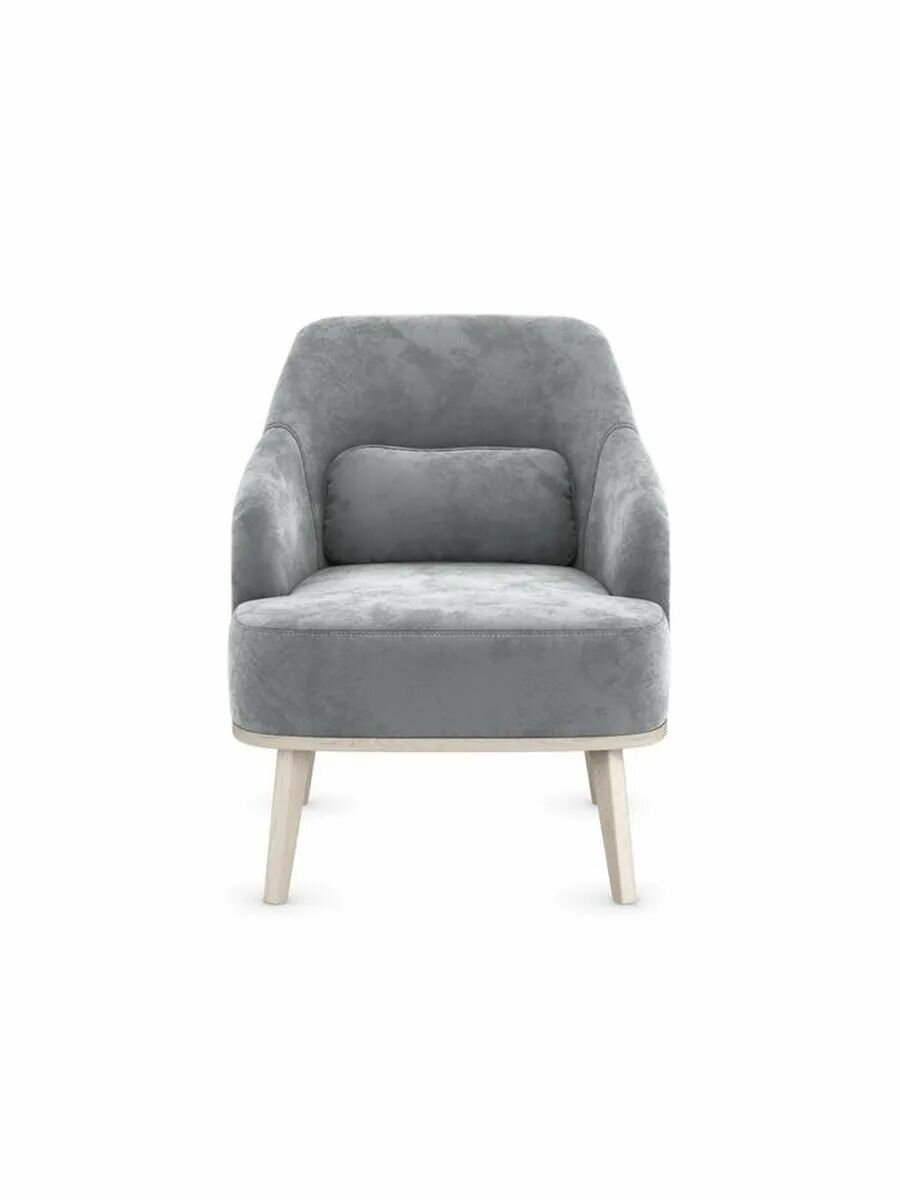 Купить Кресло мягкое Лаурель Миди для отдыха дома с декоративной подушкой, высокие ножки, 67х79х79 см, Серебро, микровелюр
