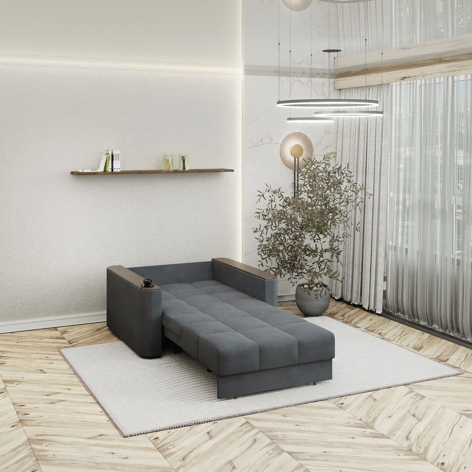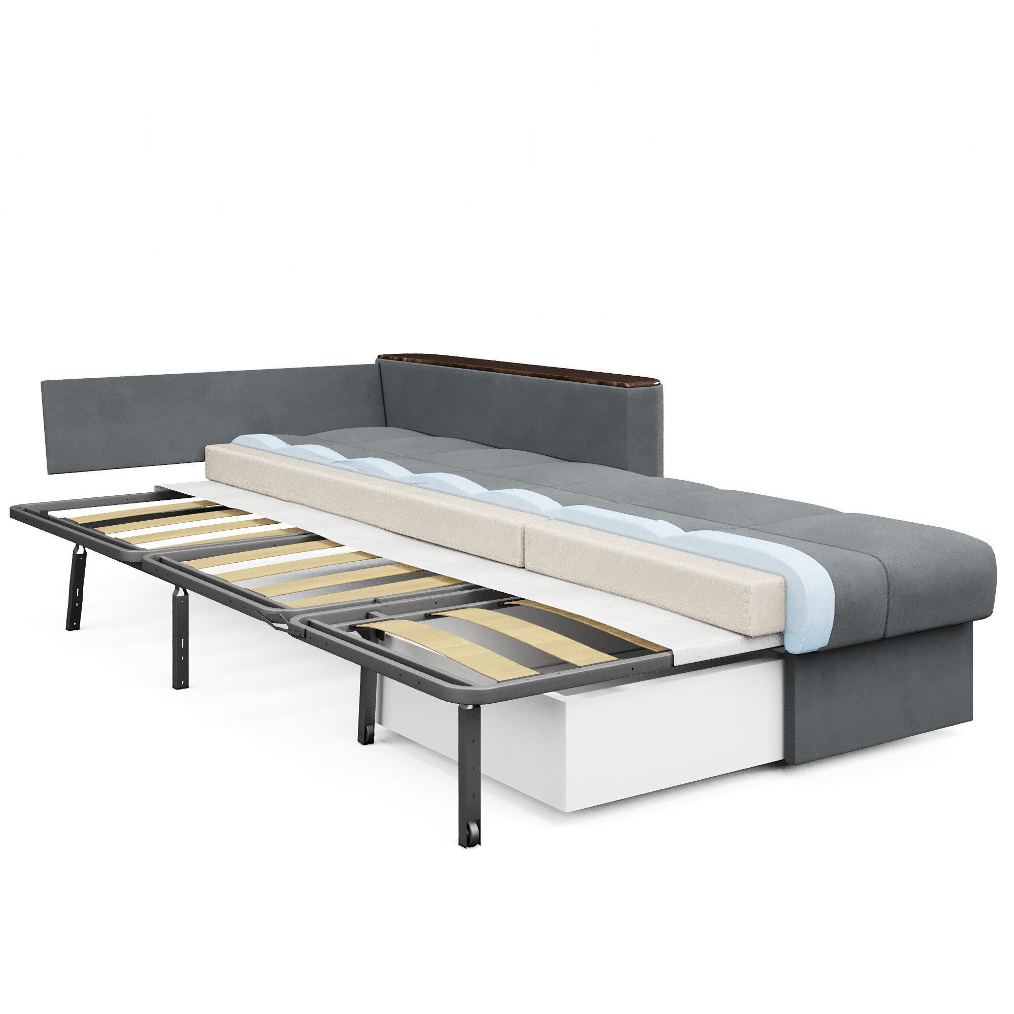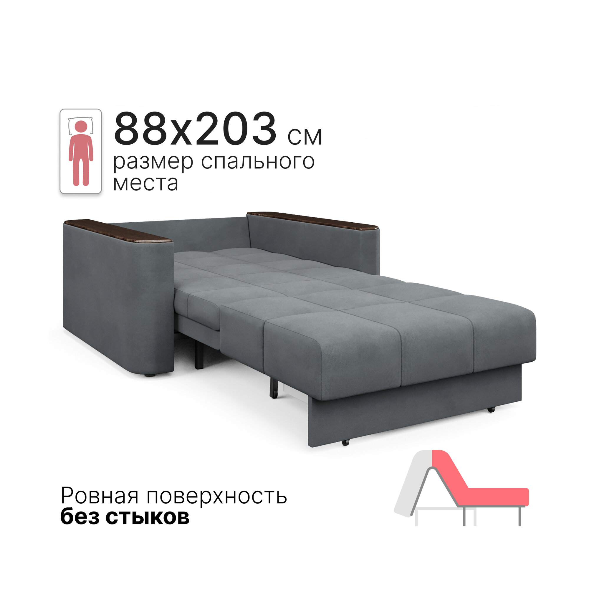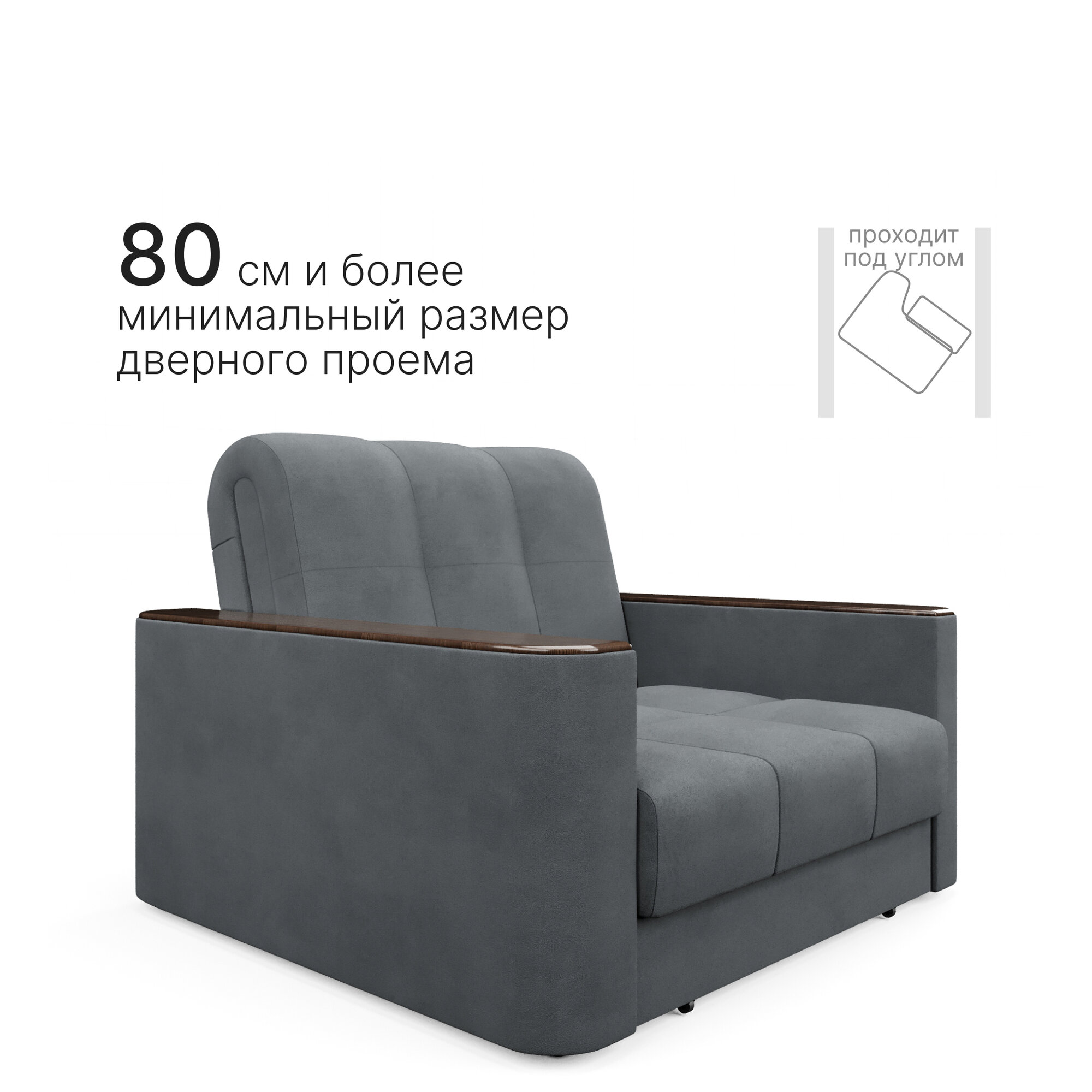 Кресло-кровать с ящиком раскладное Аккордеон, Беспружинное, 88х203, Валенсия, велюр темно-серый интересное: