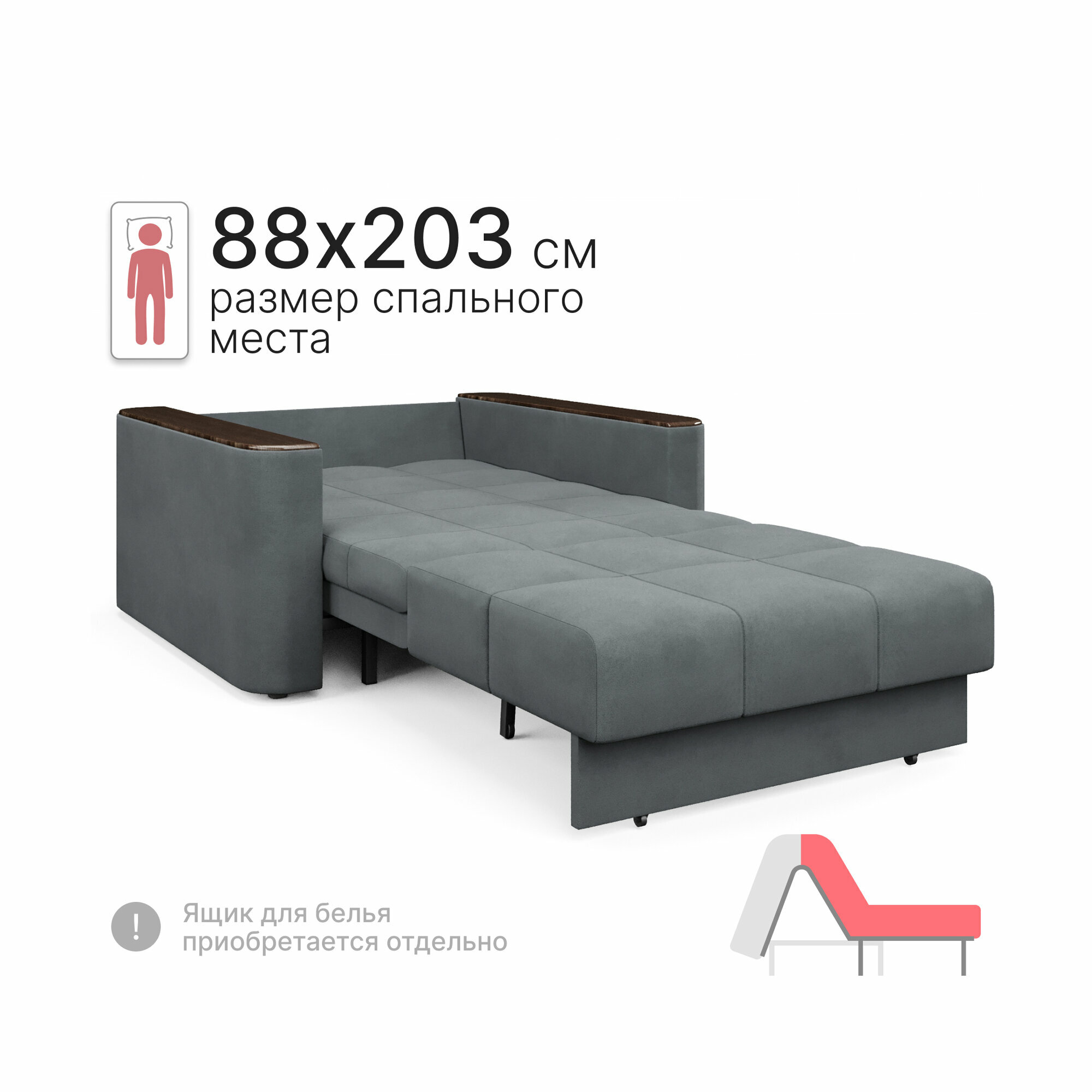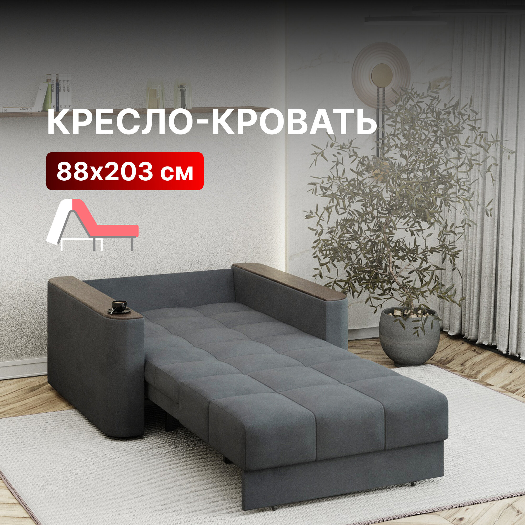 Кресло-кровать раскладное Аккордеон, Беспружинное, 88х203 спальное место, Валенсия, велюр темно-серый интересное: