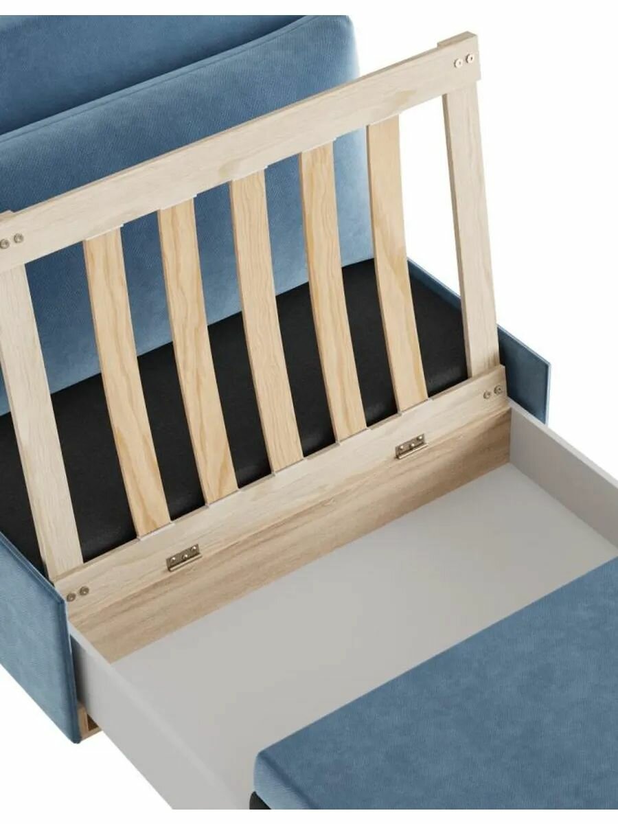 СохранитьКресло-кровать Дайва раскладное, с ящиком для белья, 81х198 см спальное место, Деним, велюр интересное: