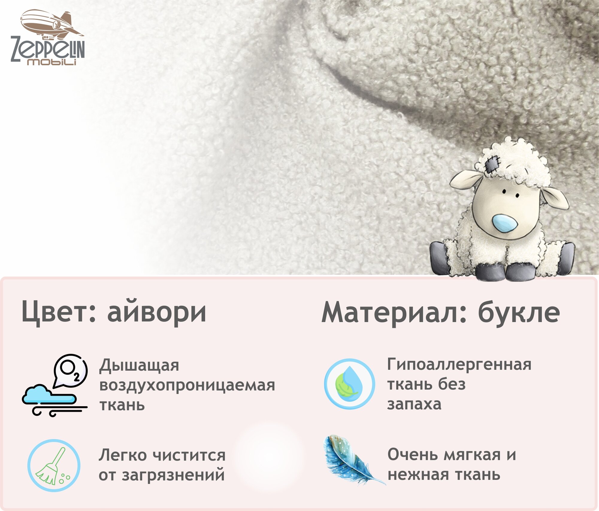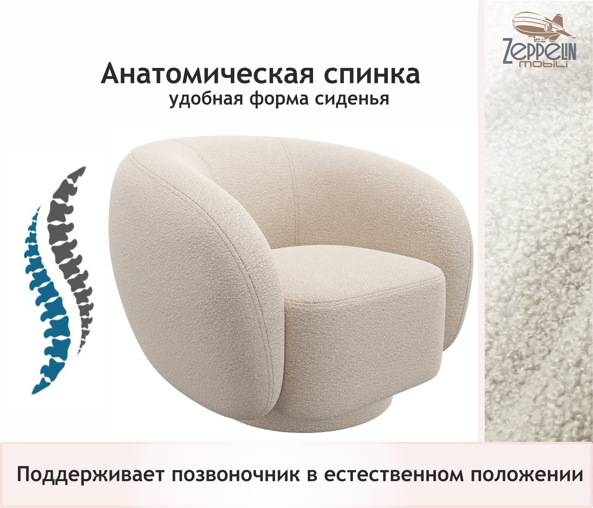 Кресло мягкое дизайнерское Plushe букле айвори Zeppelin, из ткани букле для дома и офиса интересное: