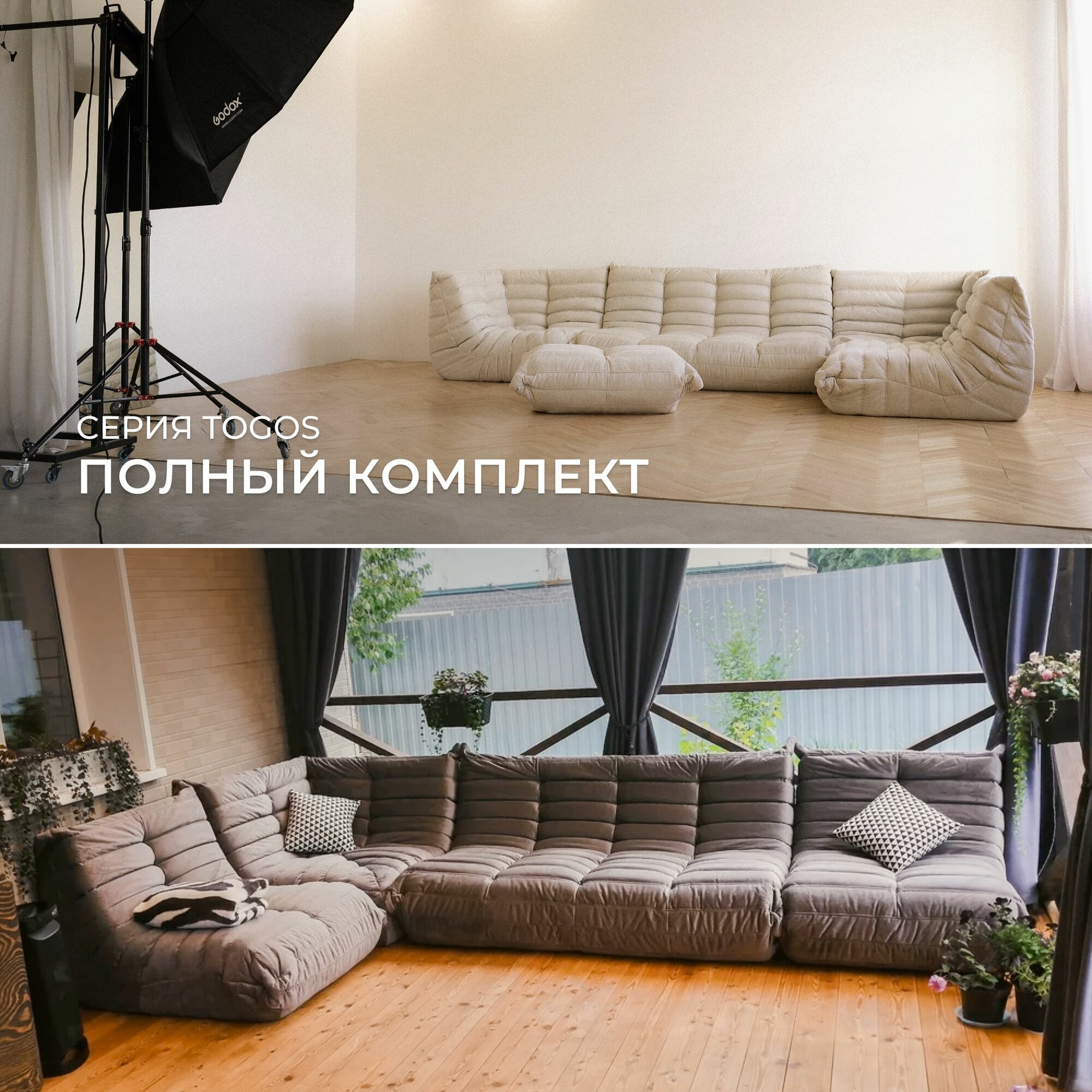 Мягкое кресло для отдыха дома Француз Togo светло-серый велюр