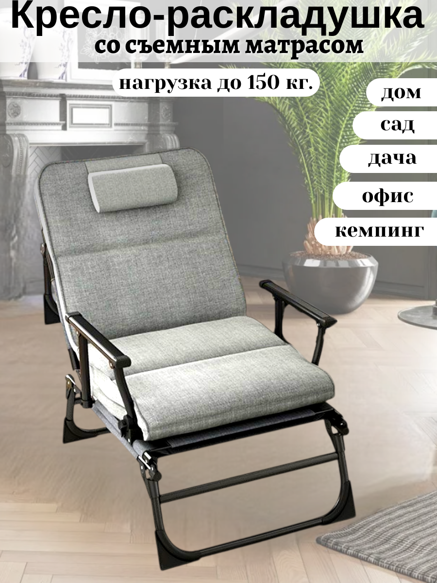Кресло кровать раскладушка, Кресло раскладушка с матрасом, Шезлонг для дачи, до 150кг интересное:
