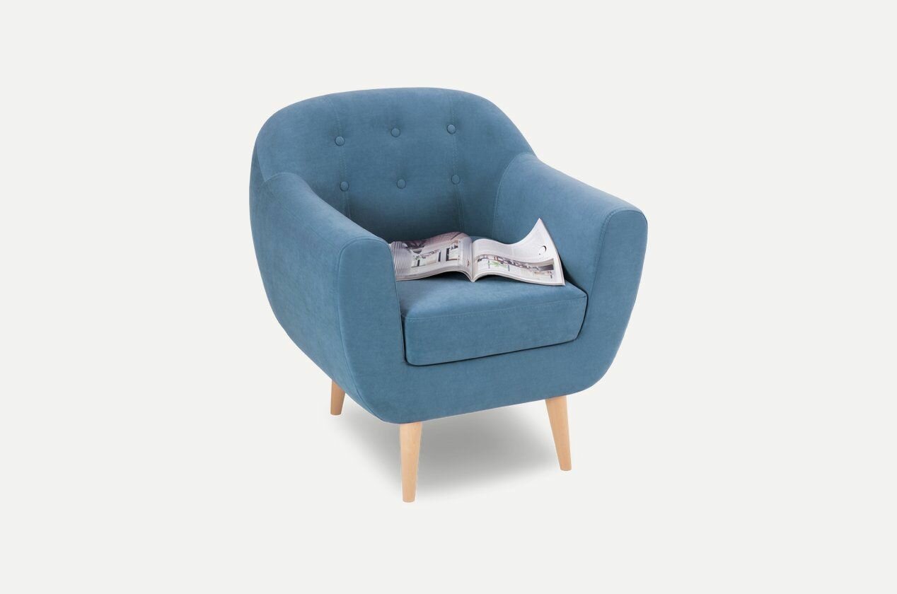Купить Кресло divan.ru Роттердам Velvet Blue, синее, велюр, с подлокотниками