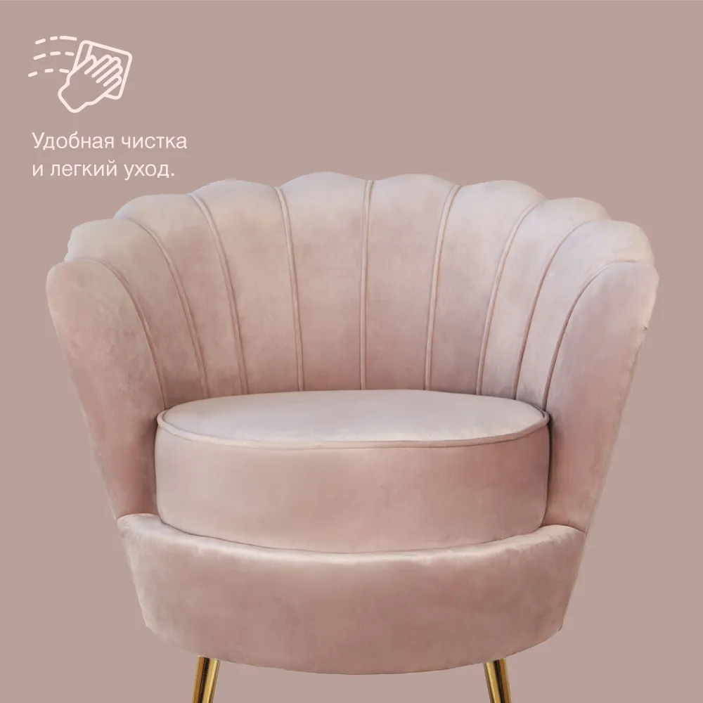 Кресло ракушка Mak-interior, Pearl Pink V2, интерьерное кресло для отдыха дома на металлических ножках, пыльно-розовое