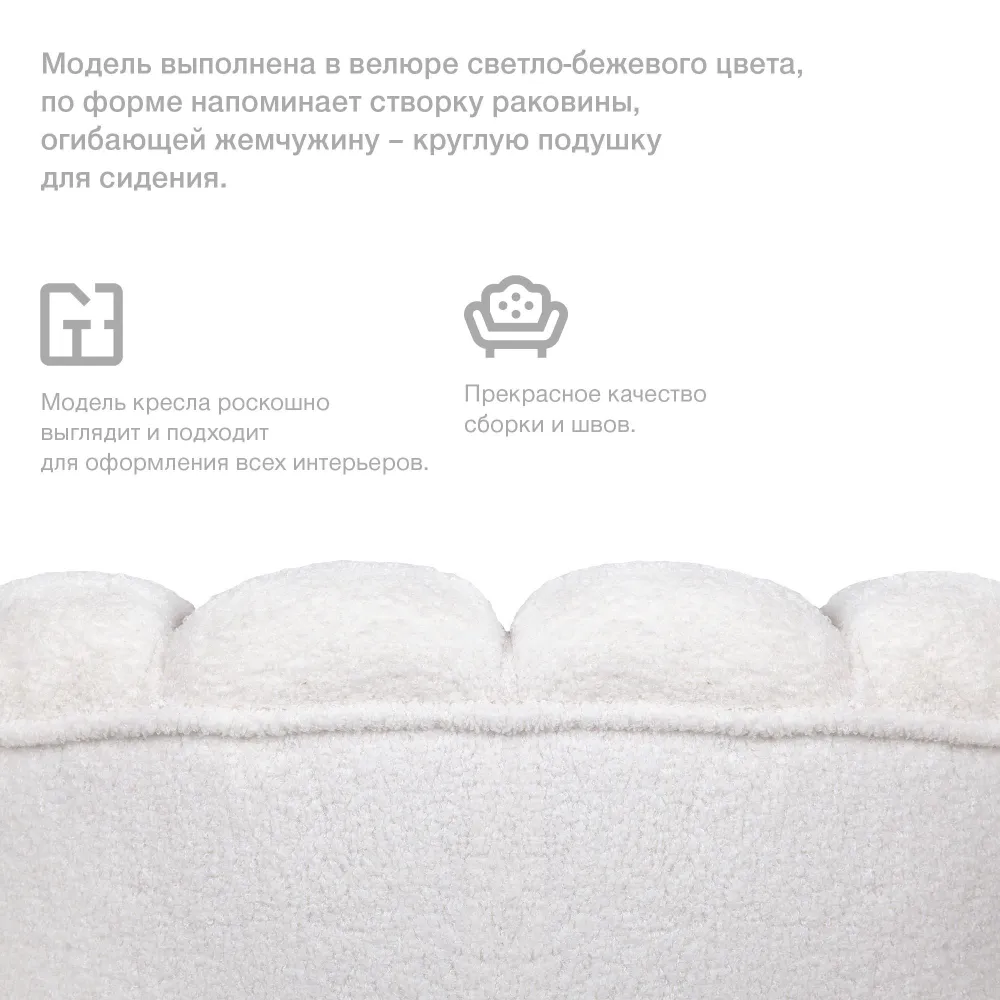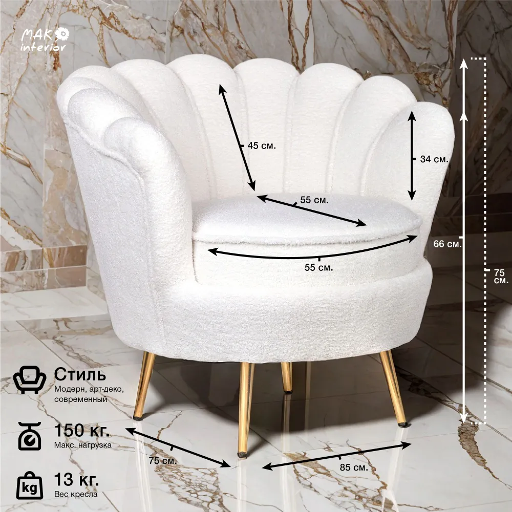 Ниже Вы можете прочитать отзывы на Кресло ракушка Mak-interior, Pearl boucle, дизайнерское для дома, ознакомится с подробными характеристиками, посмотреть интересные обзоры и фотографии на Кресло ракушка Mak-interior, Pearl boucle, дизайнерское для дома.