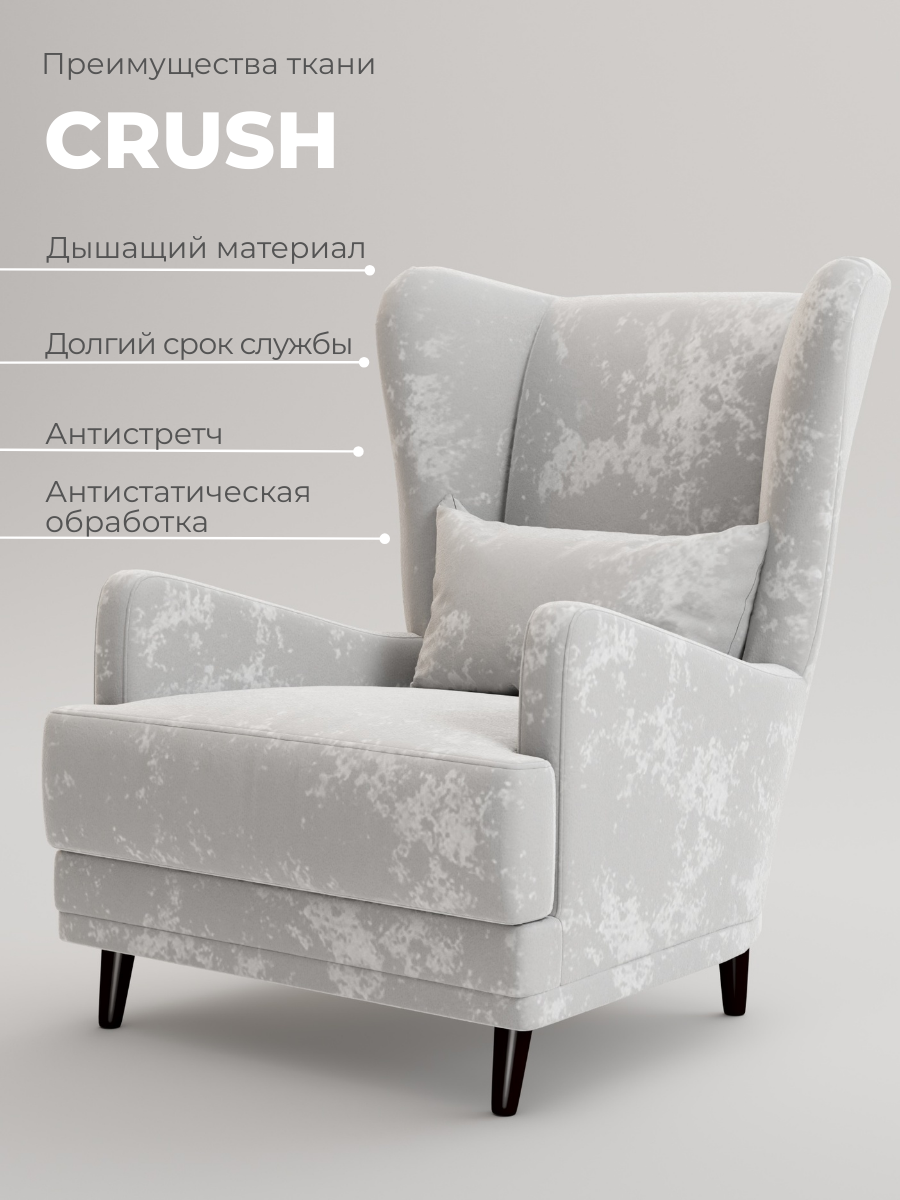 Кресло Марсель фабрика W&B, для дома, Плюш 02, Цвет кресла: светло-серый