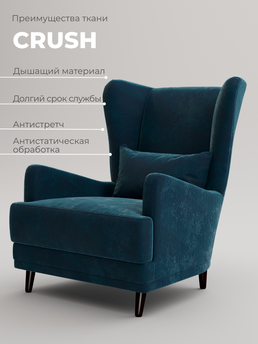 Кресло Марсель фабрика W&B, для дома, Плюш 22, Цвет кресла: синий