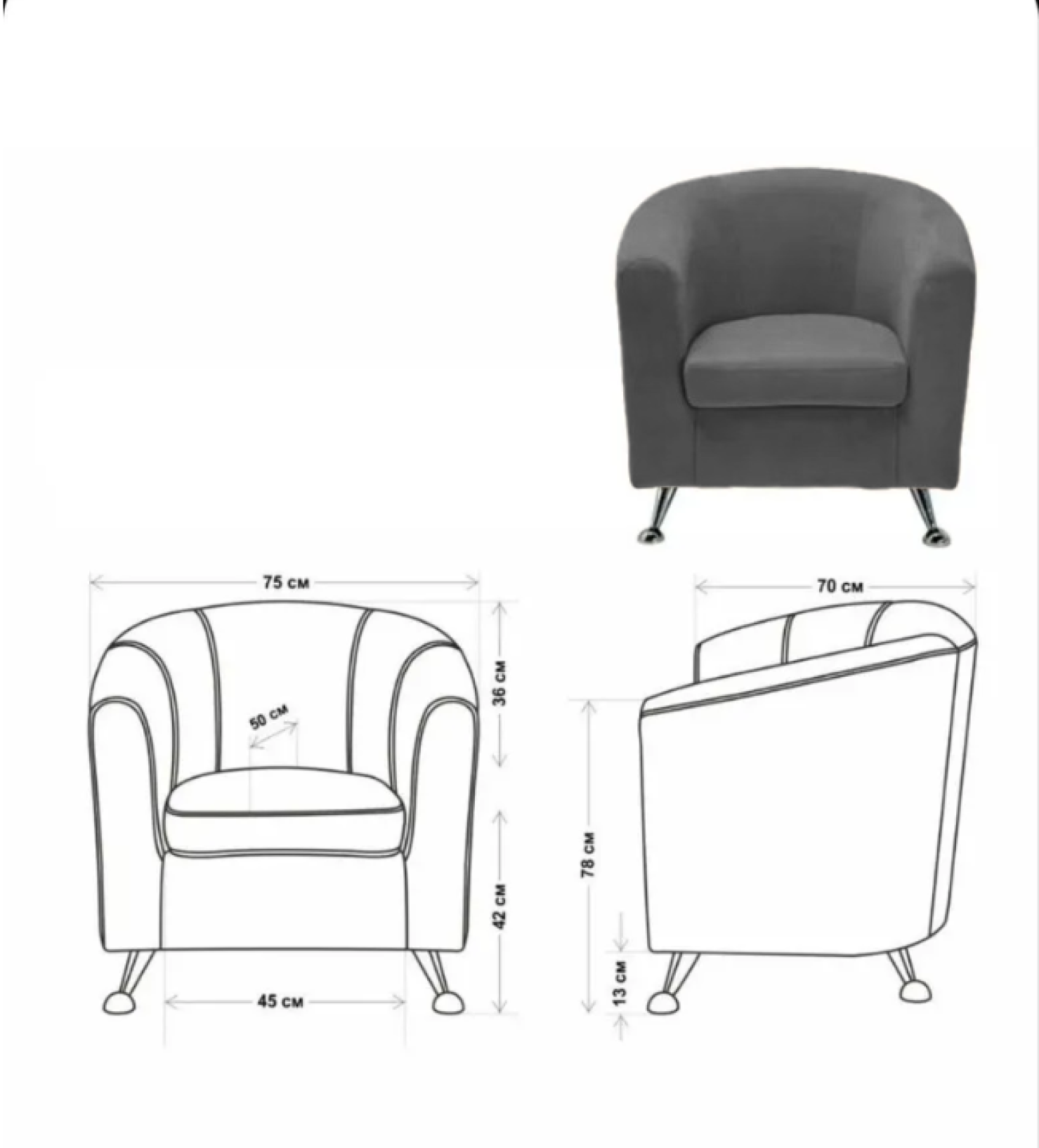 Кресло Brendoss 600 для отдыха, офиса и салона, материал износостойкий велюр, цвет графит интересное: