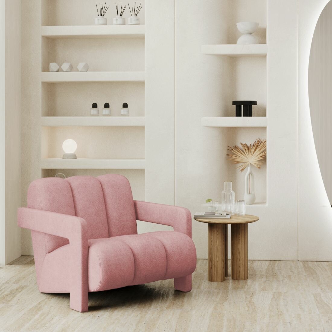 ПРЕМИУМ ОБЛАКО Мягкое кресло для дома, дачи, квартиры из букле. Цвет бледно-розовый