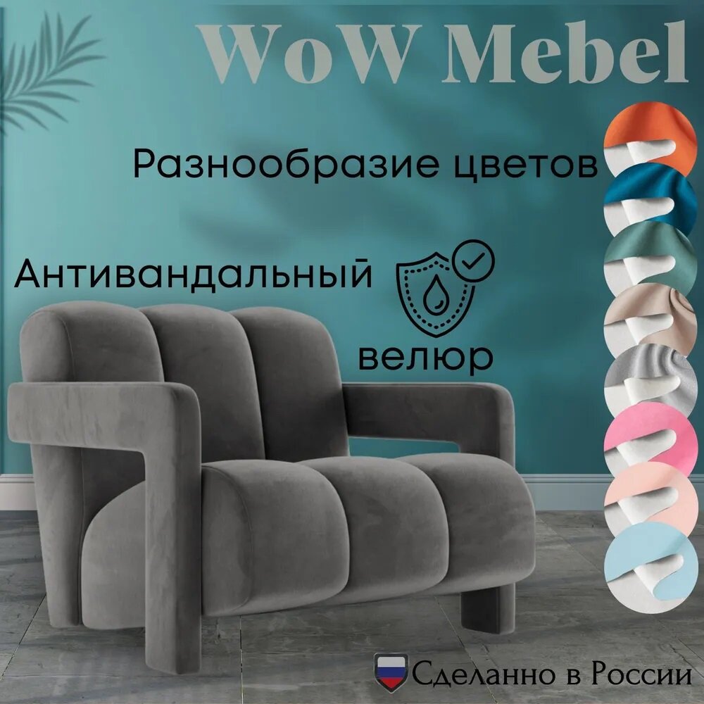 Премиум облако Мягкое кресло для дома, дачи, квартиры из велюра. Цвет серый
