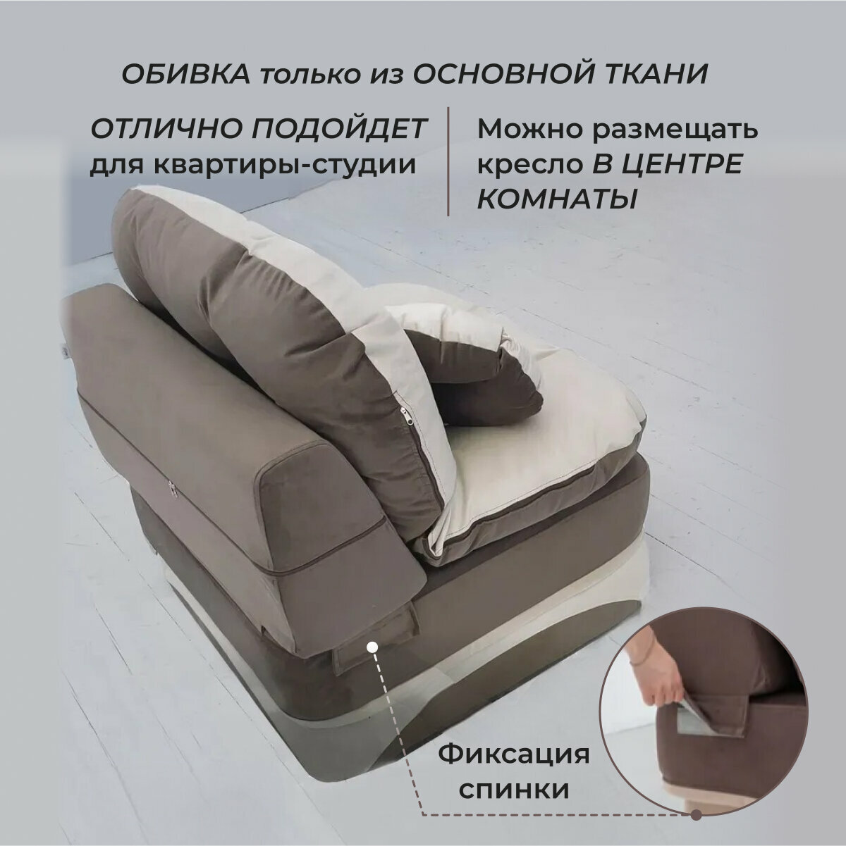 Кресло кровать раскладное, бескаркасное 90*95 см с матрасом Клиффорд, спальное место 90*230 см, коричневое с бежевым