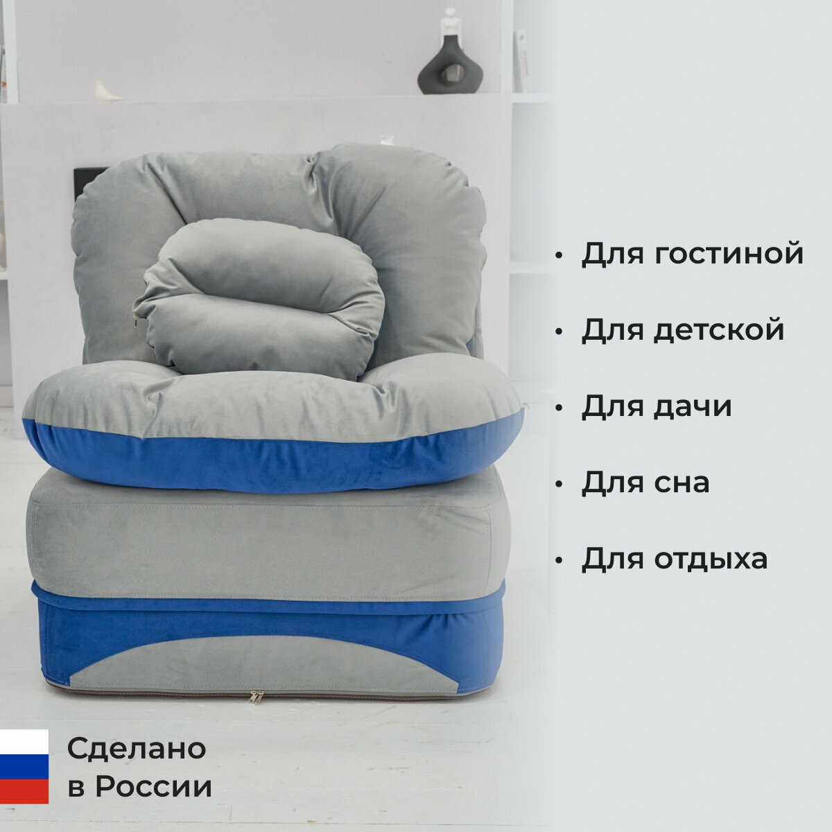 Купить Кресло кровать раскладное, бескаркасное 90*95 см с матрасом Клиффорд, спальное место 90*230 см, синее с серым