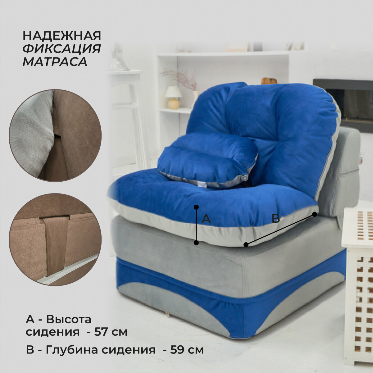 СохранитьКресло кровать раскладное, бескаркасное 90*95 см с матрасом Клиффорд, спальное место 90*230 см, синее с серым интересное: