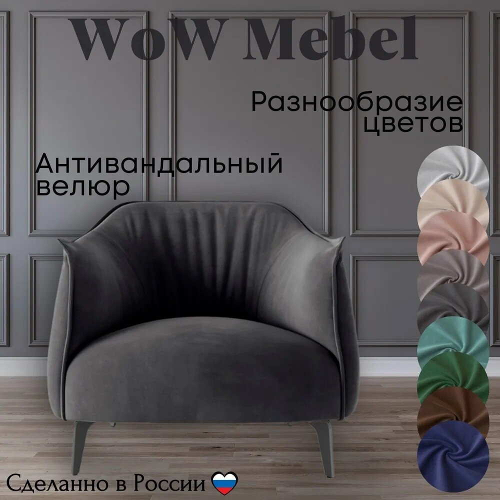 Купить Кресло дизайнерское BELLO STANDART из велюра. Цвет темно-серый. Размер 63x72x79 (д/ш/в)