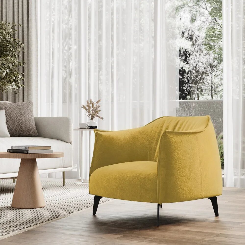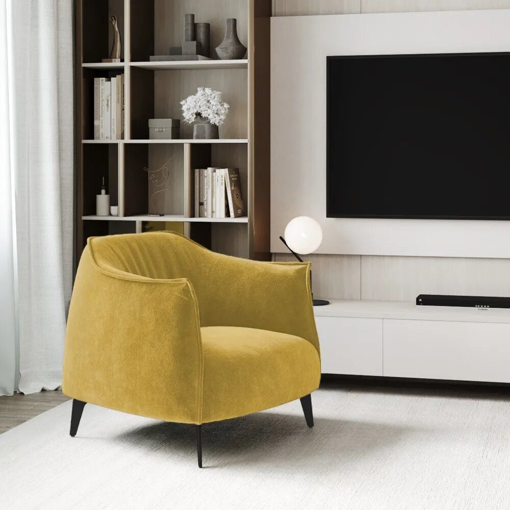 Кресло дизайнерское BELLO STANDART из велюра. Цвет мастард. Размер 63x72x79 (д/ш/в)