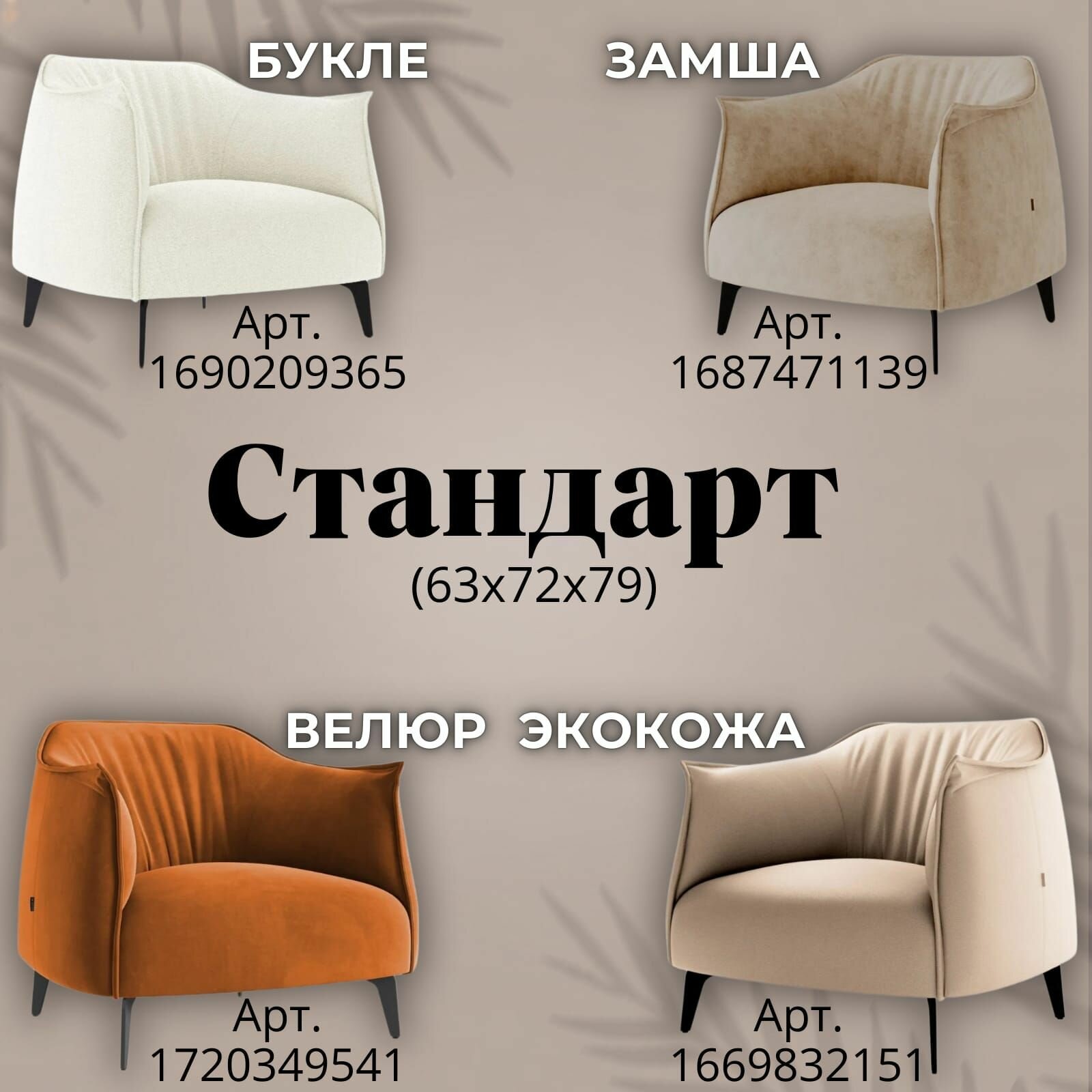 Кресло дизайнерское BELLO STANDART из велюра. Цвет тедди. Размер 63x72x79 (д/ш/в)