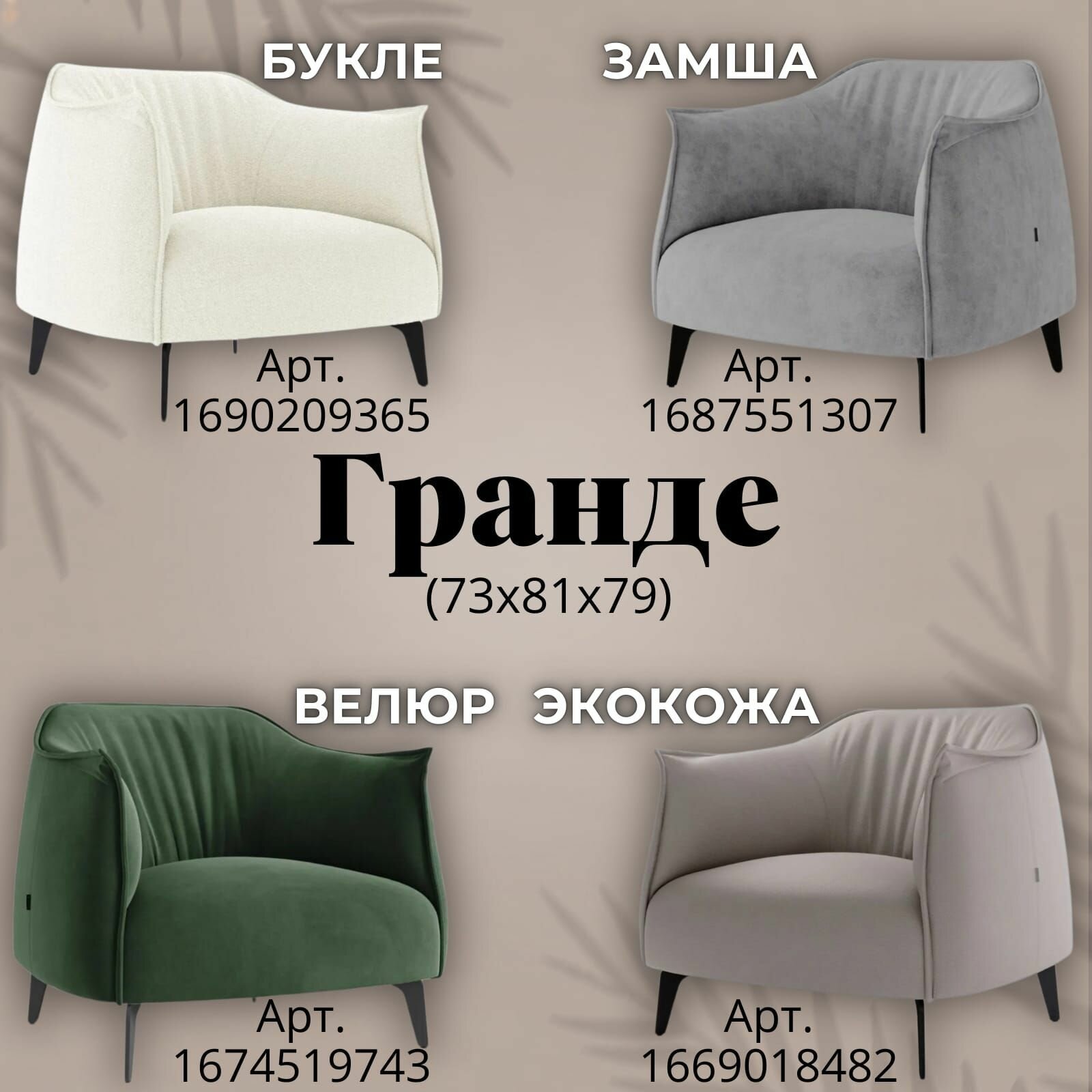 Кресло дизайнерское BELLO STANDART из велюра. Цвет серый. Размер 63x72x79 (д/ш/в)