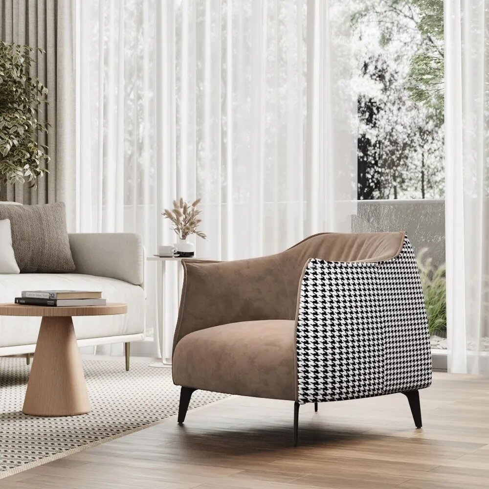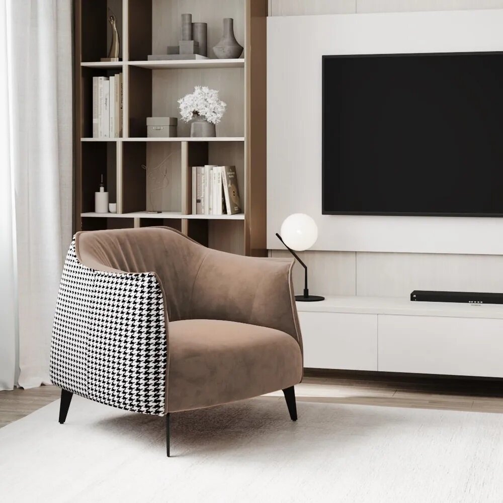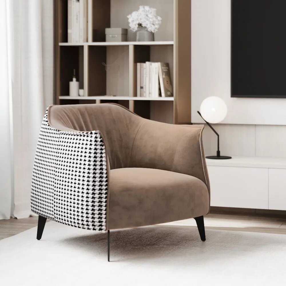 Кресло дизайнерское BELLO STANDART. Коричневый велюр с гобеленом гусиная лапка. Размер 63x72x79 (д/ш/в)