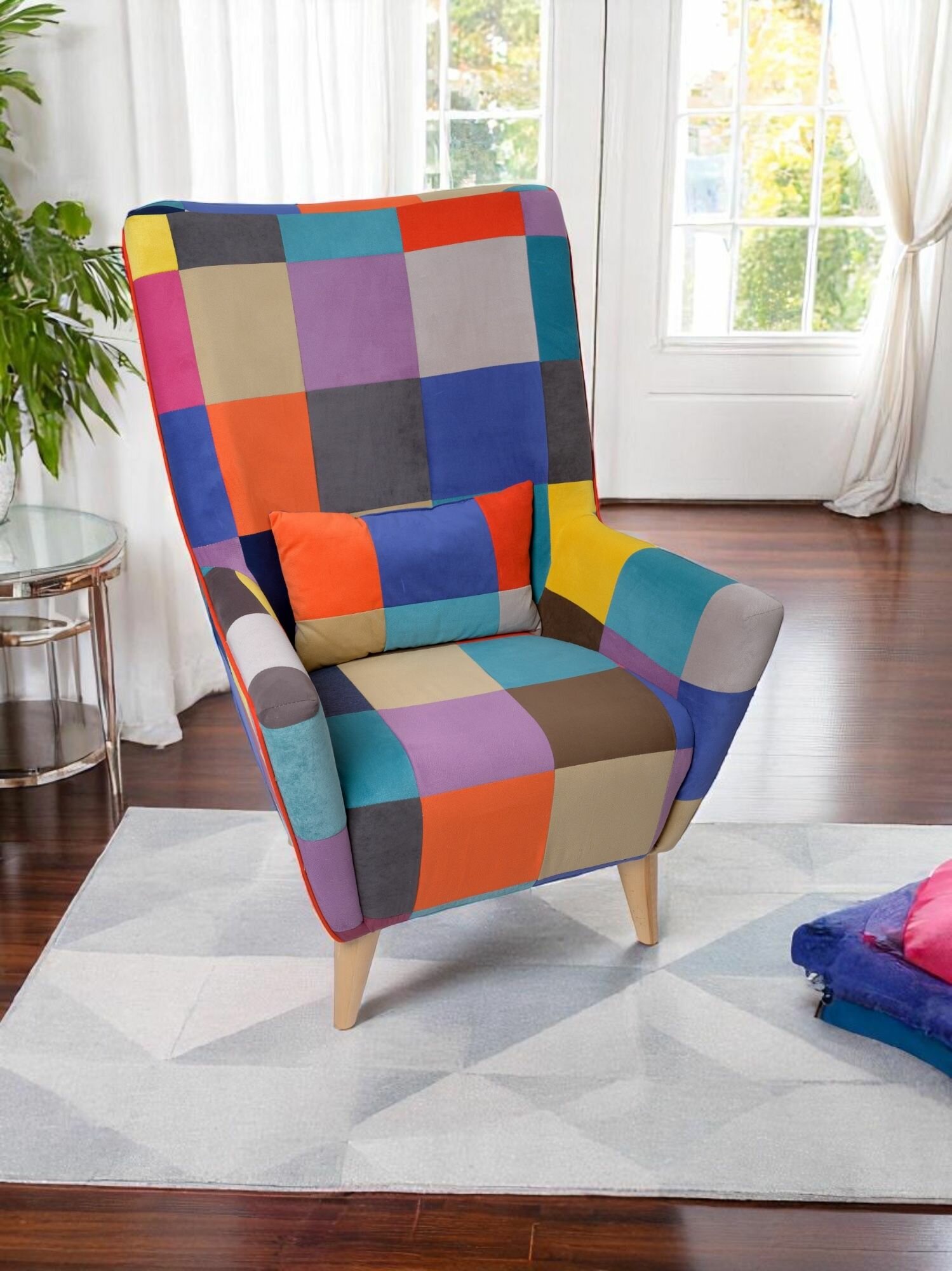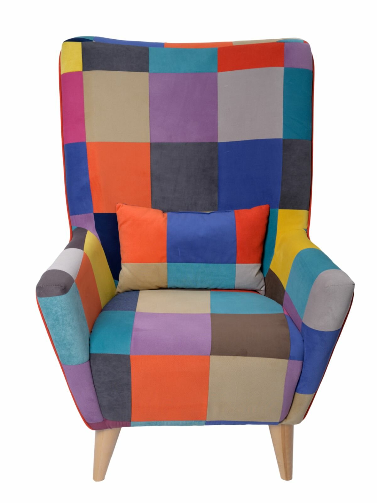 СохранитьКресло мягкое КРЕСЛОВЪ Турин, велюр, пэчворк 78х90х109см. Кресло на ножках интересное: