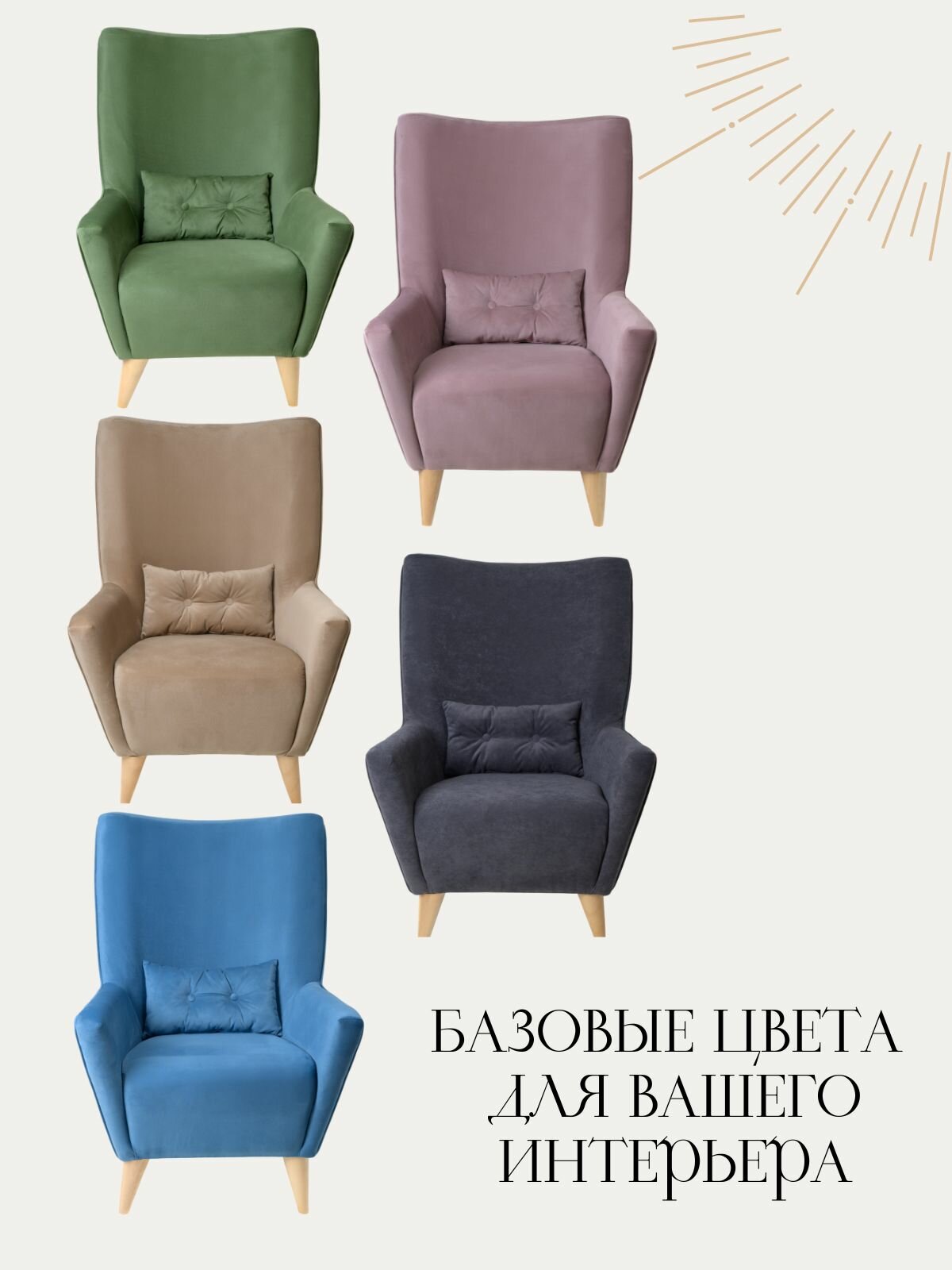 Мягкое кресло КРЕСЛОВЪ Турин, велюр Maserati pastel розовое, 78х90х109см. Кресло на ножках