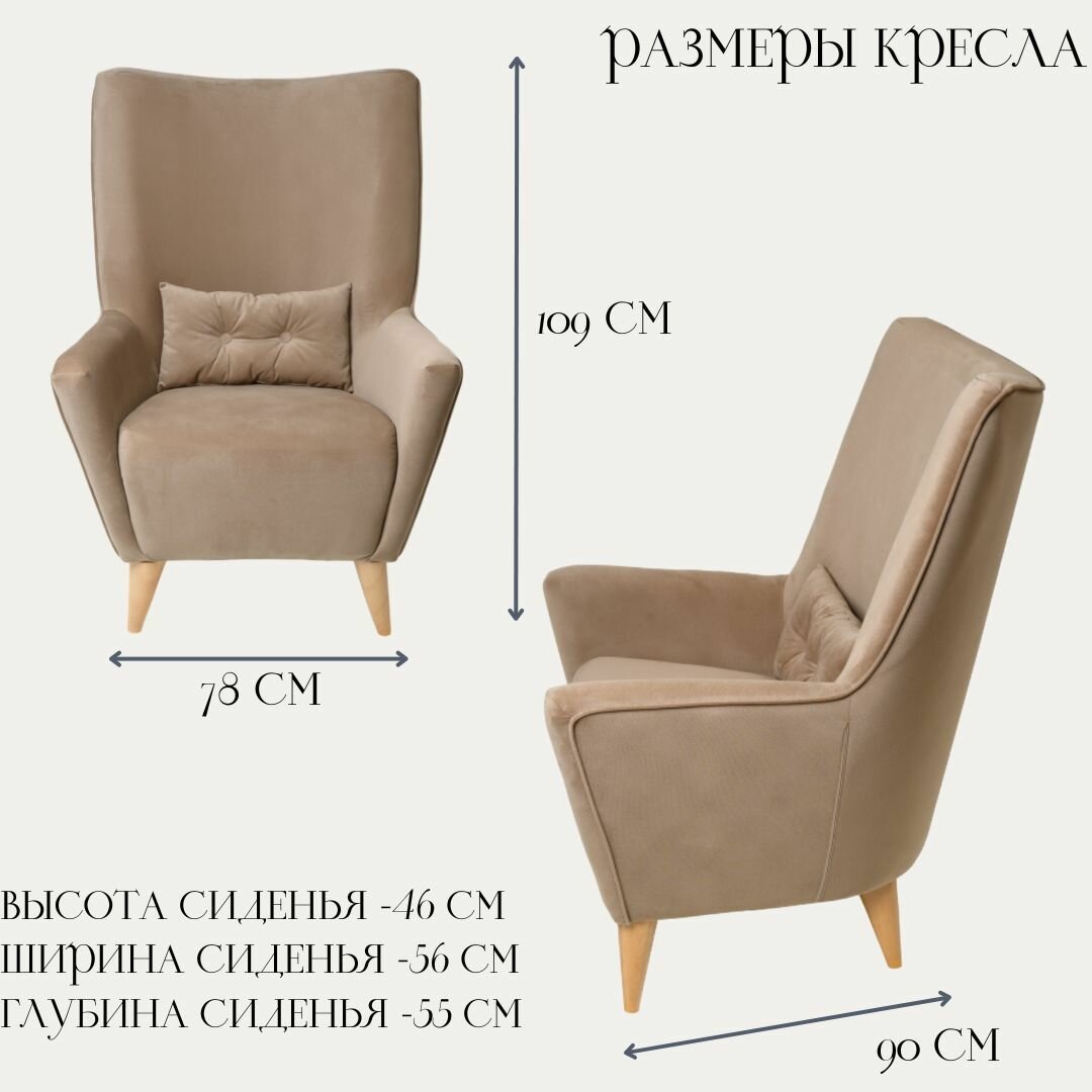 СохранитьМягкое кресло КРЕСЛОВЪ Турин, велюр Maserati pepel бежевое, 78х90х109см. Кресло на ножках интересное:
