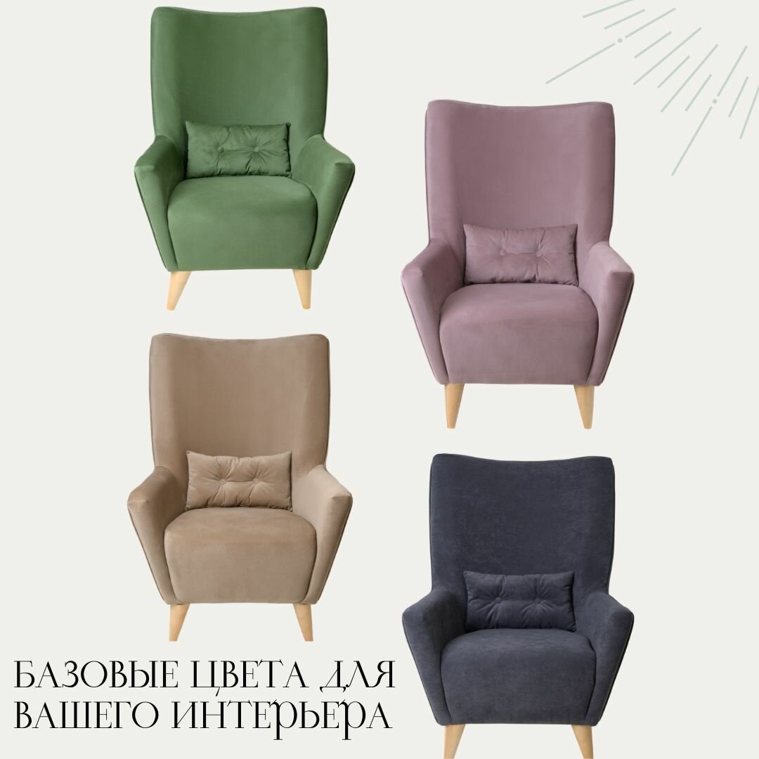 Мягкое кресло КРЕСЛОВЪ Турин, велюр Maserati Green зеленое, 78х90х109см. Кресло на ножках