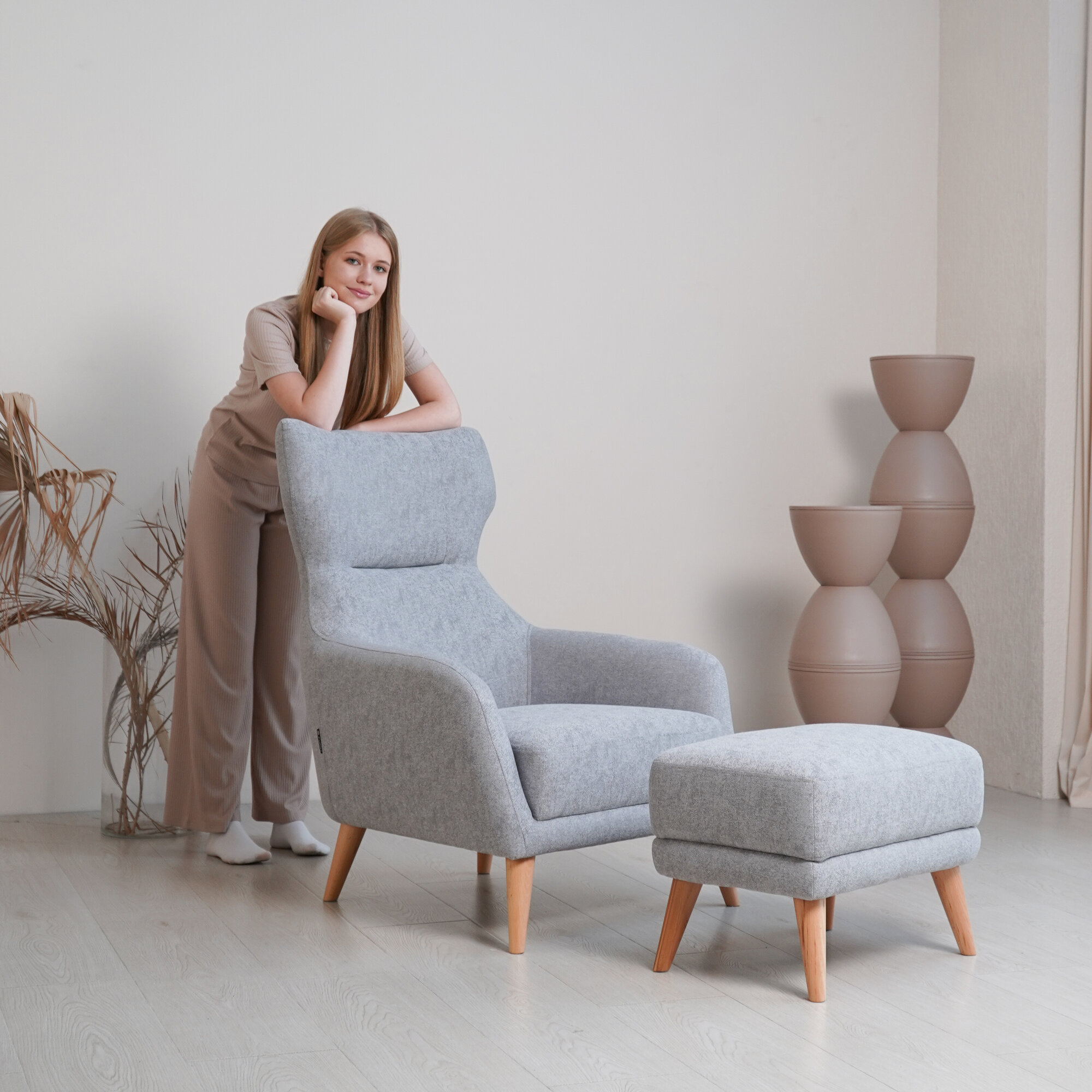Стильное кресло Орландо в скандинавском стиле / рогожка бежевый