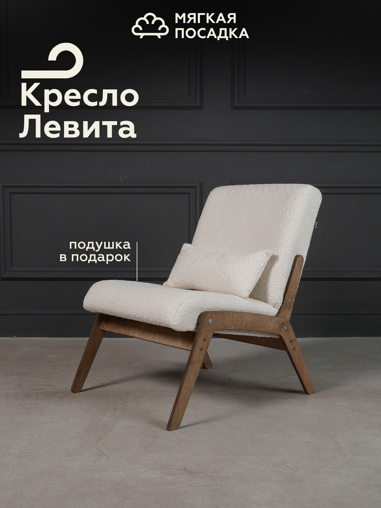 СохранитьКресло для отдыха "ЛЕВИТА" от "Мягкой Посадки", без подлокотников, обивка белое букле, 56x75х78 см интересное: