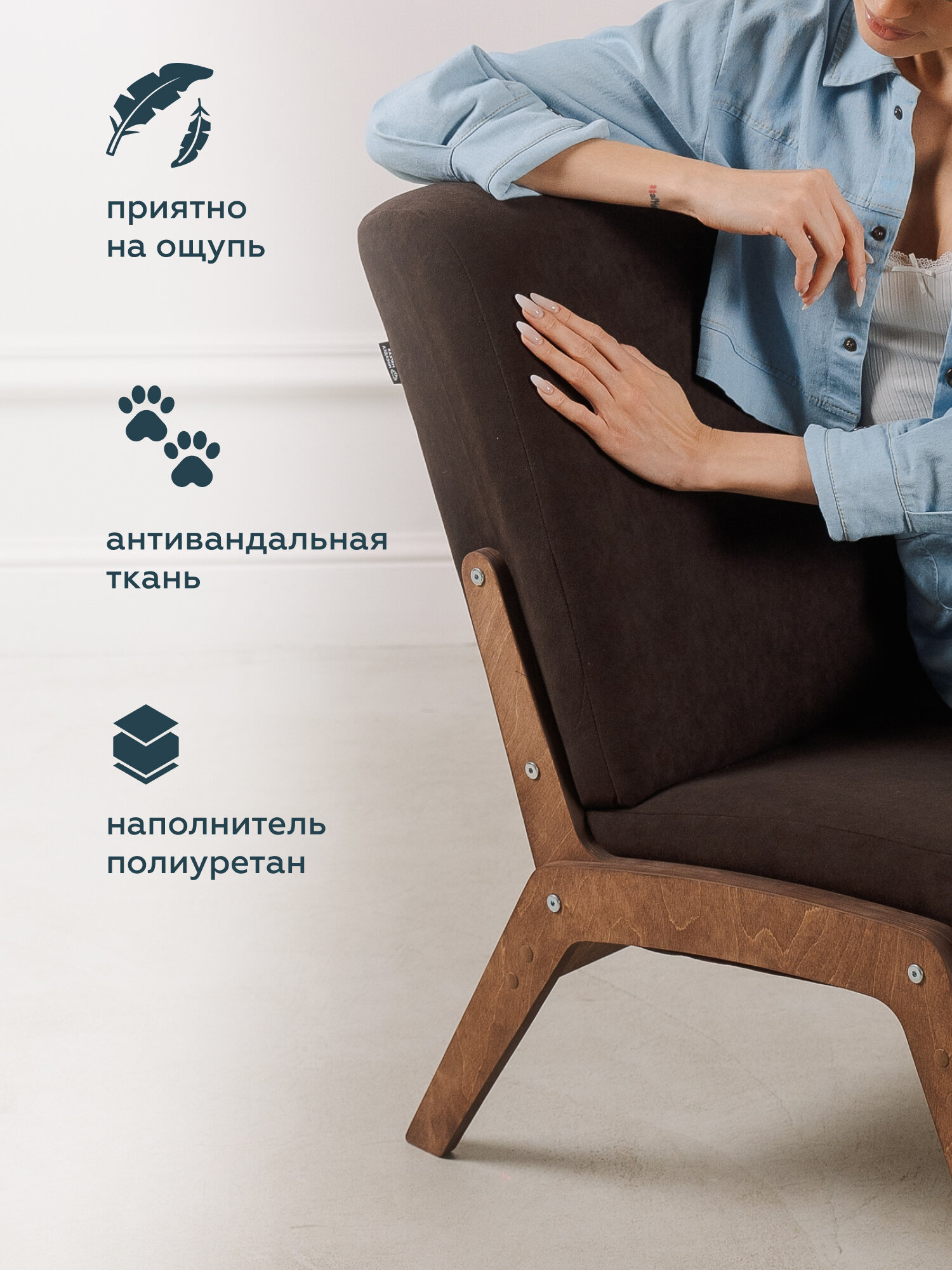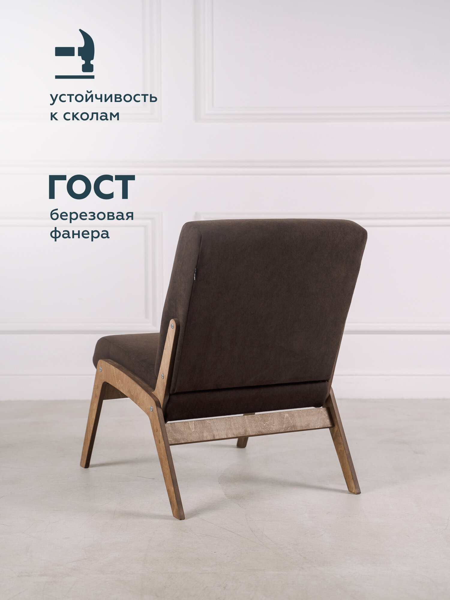 Купить Кресло для отдыха "ЛЕВИТА" от "Мягкой посадки", без подлокотников, обивка коричный велюр, 57х75х78 см