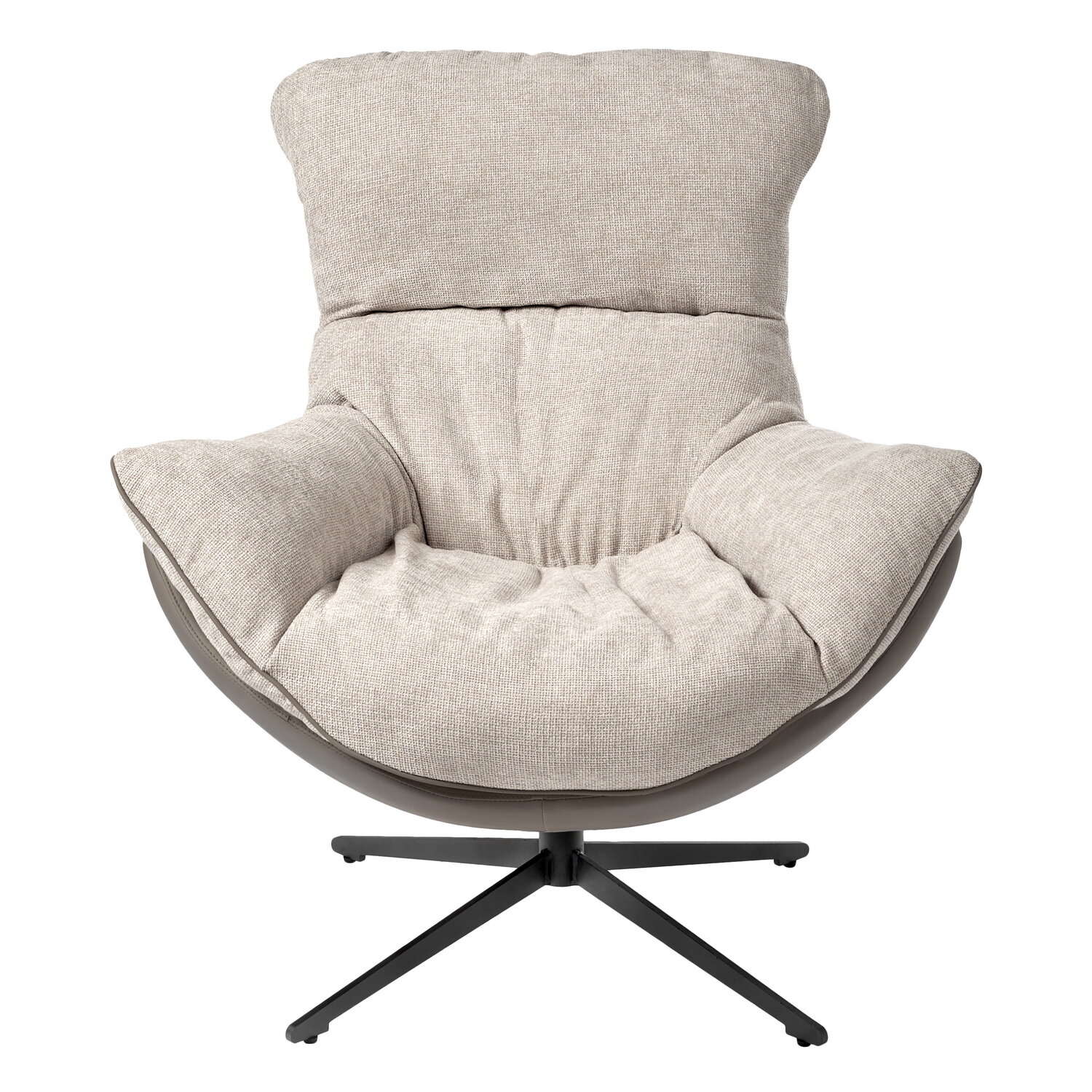 Купить Кресло мягкое для дома HUG светло-серое, экокожа, шенилл, для отдыха в гостиную, крутящееся 360 на ножке