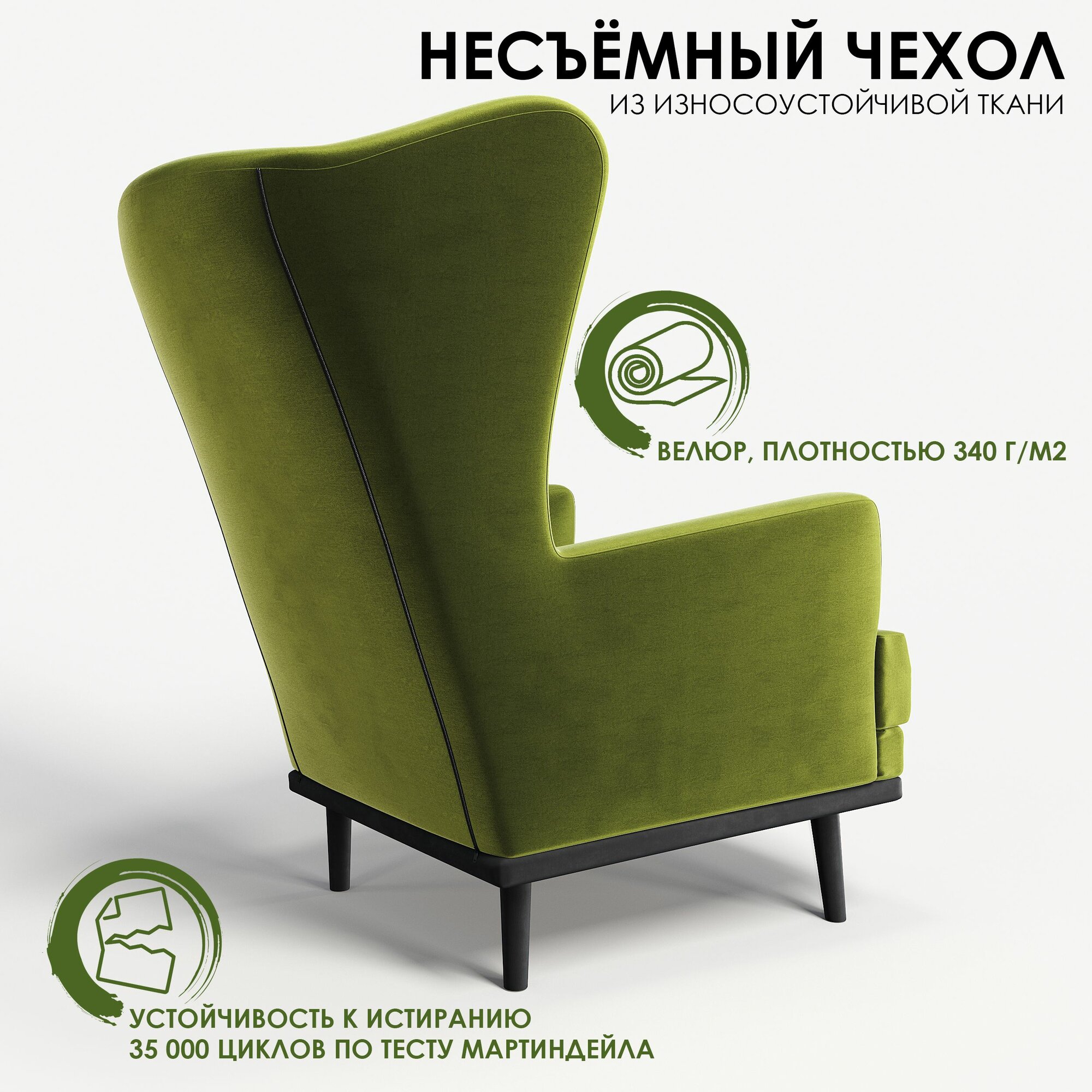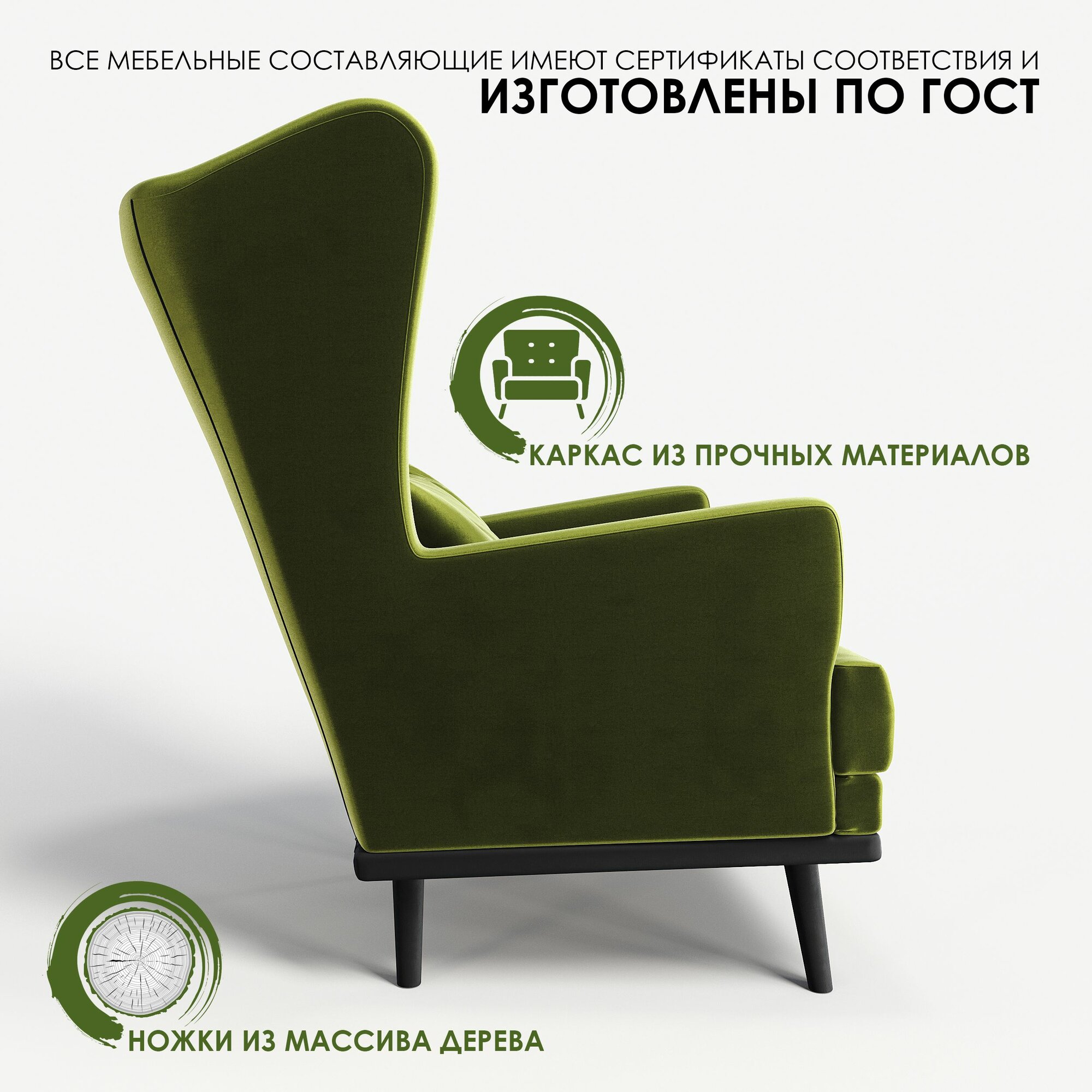 Кресло мягкое с ушами Фантазёр эко-кожа зеленый на высоких ножках, для ожидания, отдыха и чтения книг. Для дома и общественных мест. В гостиную, балкон, спальню и переговорную комнату.