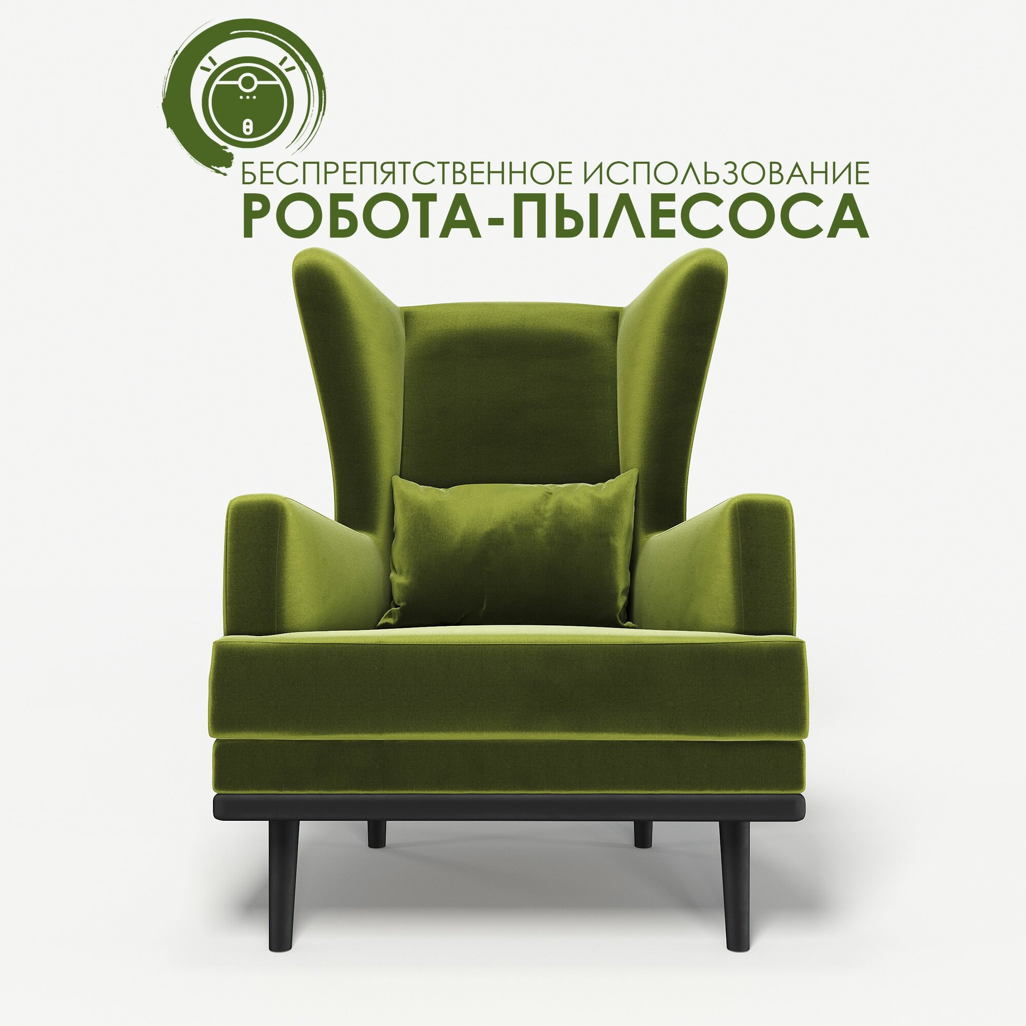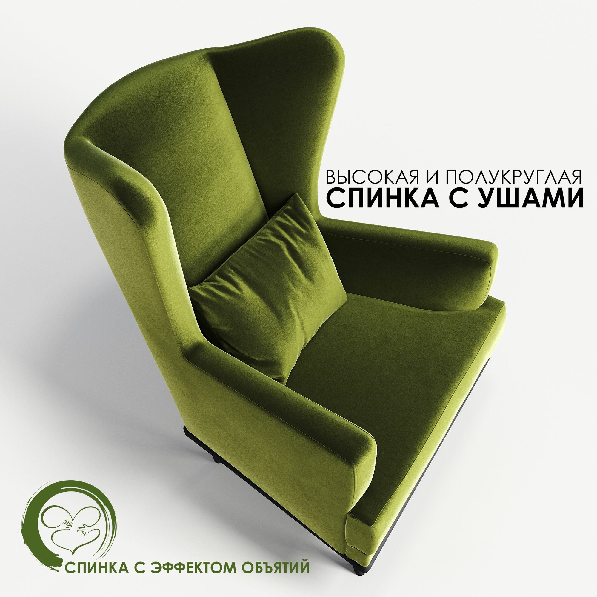 Мягкое кресло с ушами Фантазёр искусственный мех темно-зелёный L-10 на высоких ножках, для отдыха и чтения книг. В гостиную, балкон, спальню и переговорную комнату.