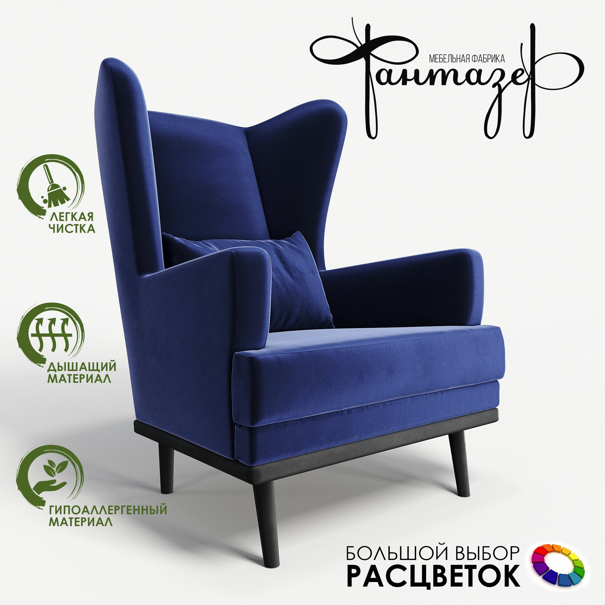Мягкое кресло с ушами Фантазёр Z-1 на высоких ножках, для отдыха и чтения книг. В гостиную, балкон, спальню и переговорную комнату.
