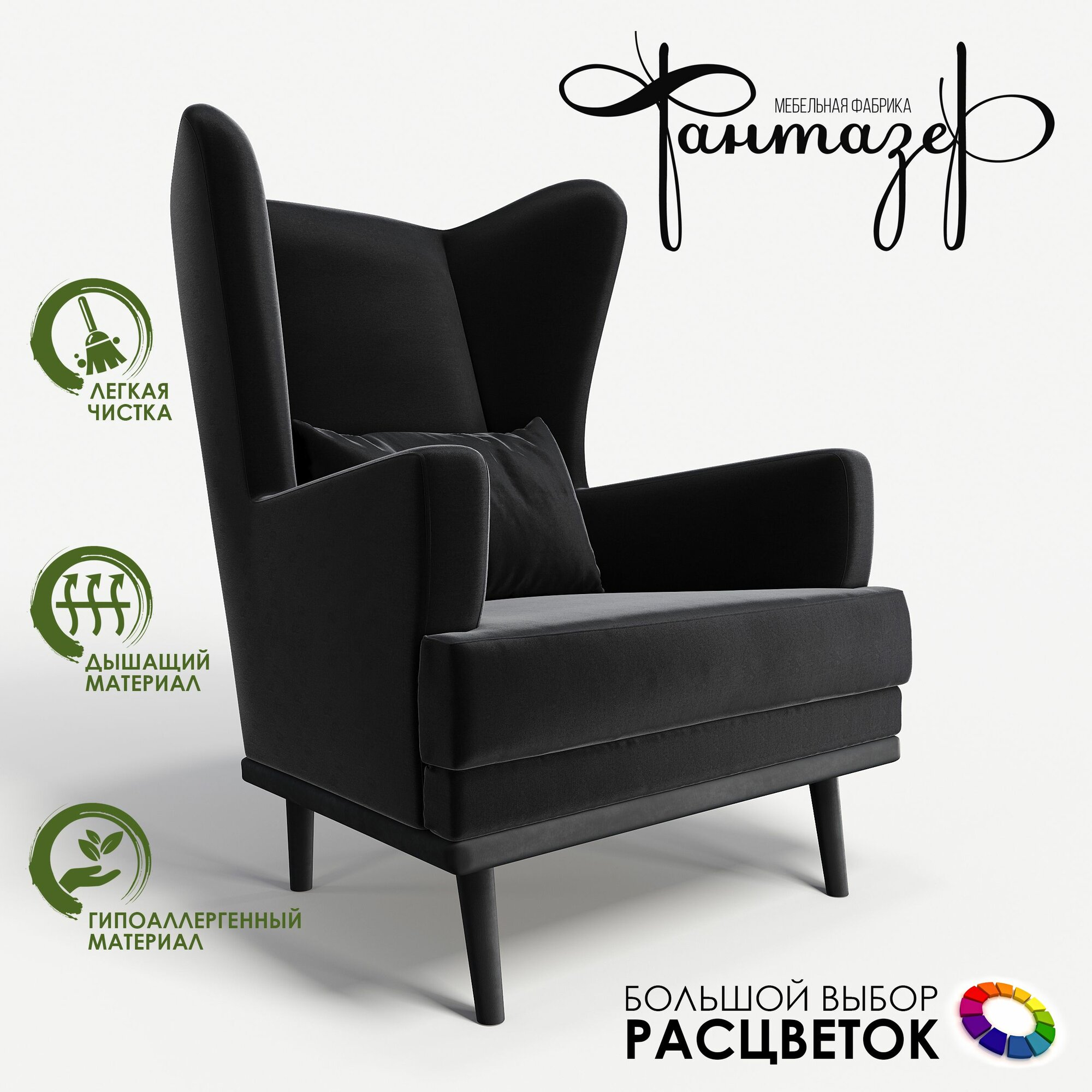 Мягкое кресло с ушами Фантазёр Z-8 на высоких ножках, для отдыха и чтения книг. В гостиную, балкон, спальню и переговорную комнату.