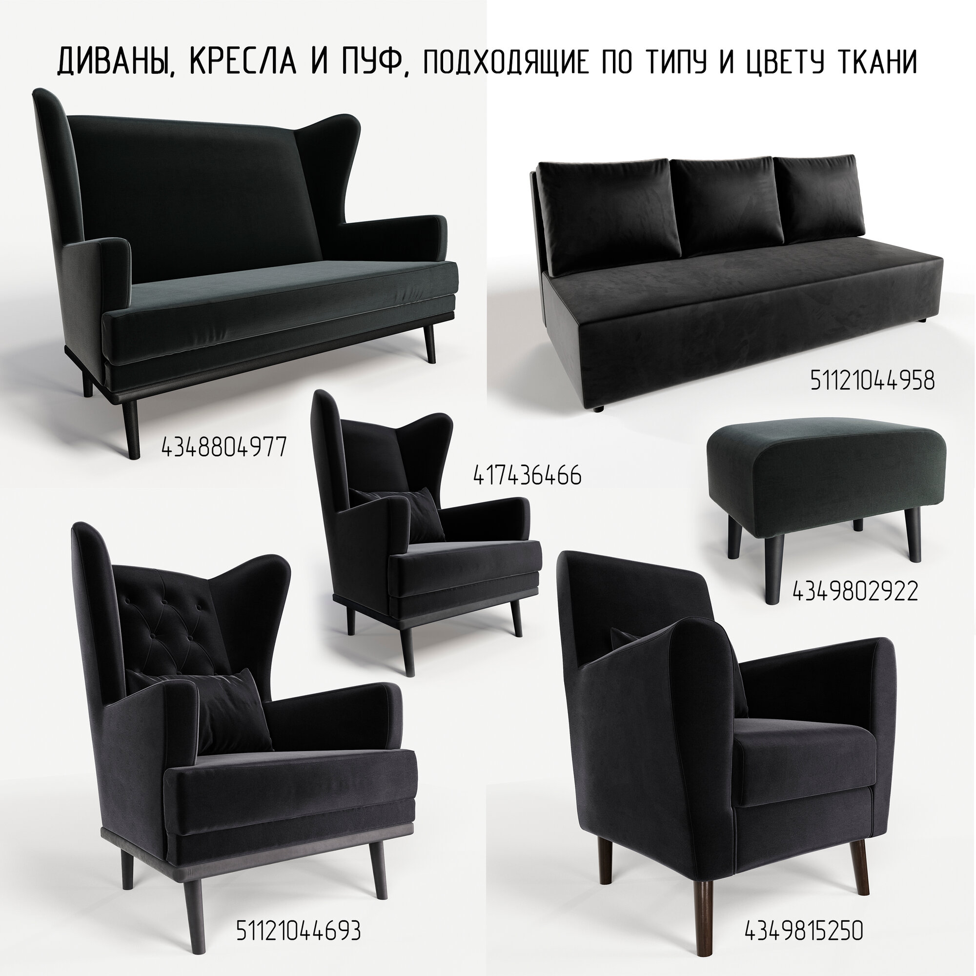 Мягкое кресло с ушами Фантазёр искусственный мех чёрный L-16 на высоких ножках, для отдыха и чтения книг. В гостиную, балкон, спальню и переговорную комнату.