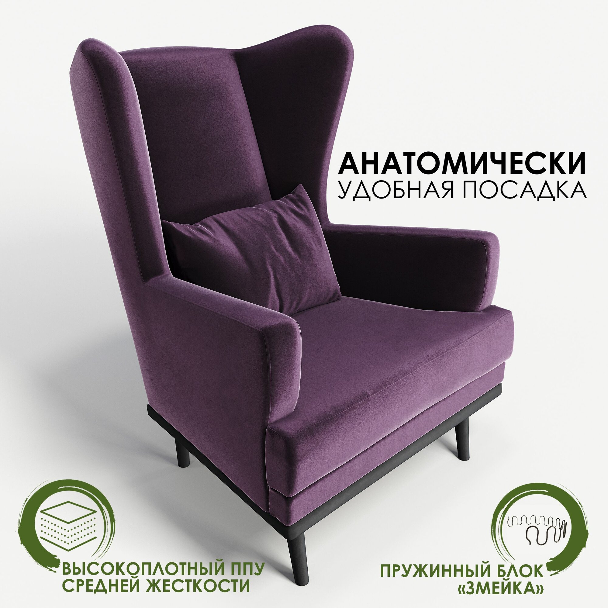 Мягкое кресло с ушами Фантазёр Z-4 на высоких ножках, для отдыха и чтения книг. В гостиную, балкон, спальню и переговорную комнату.
